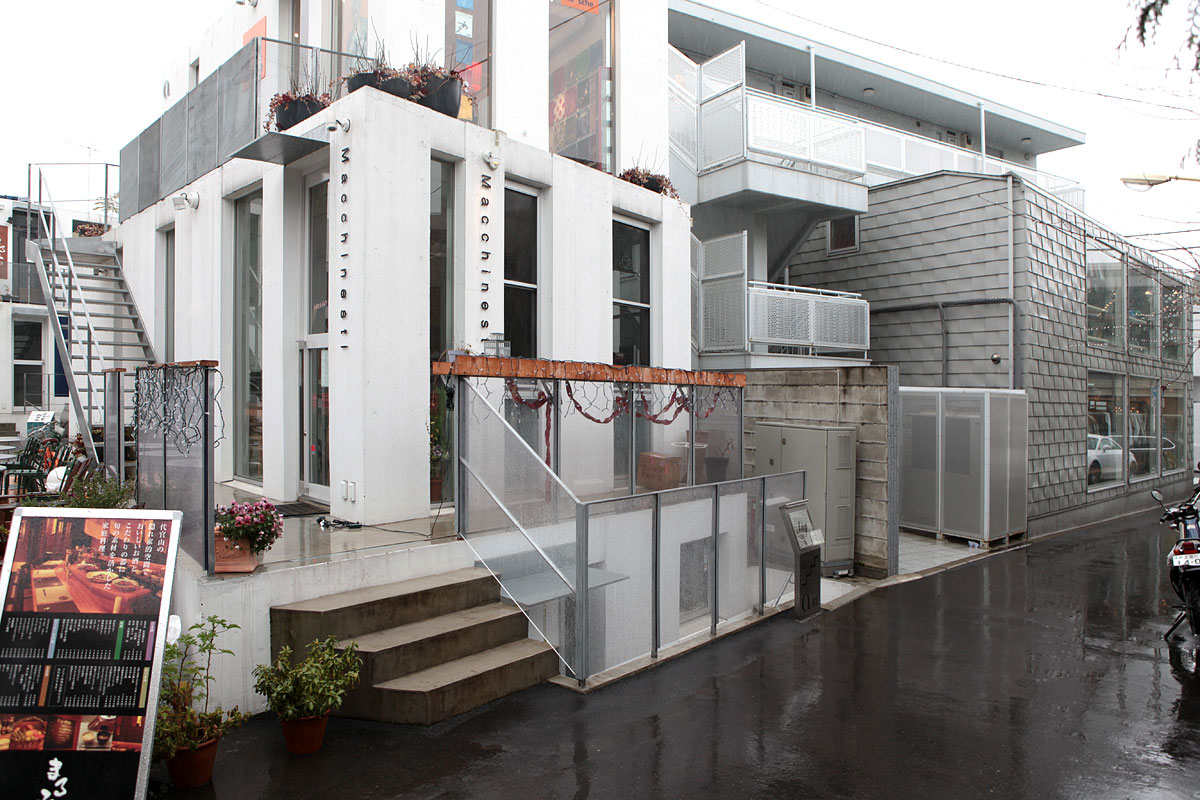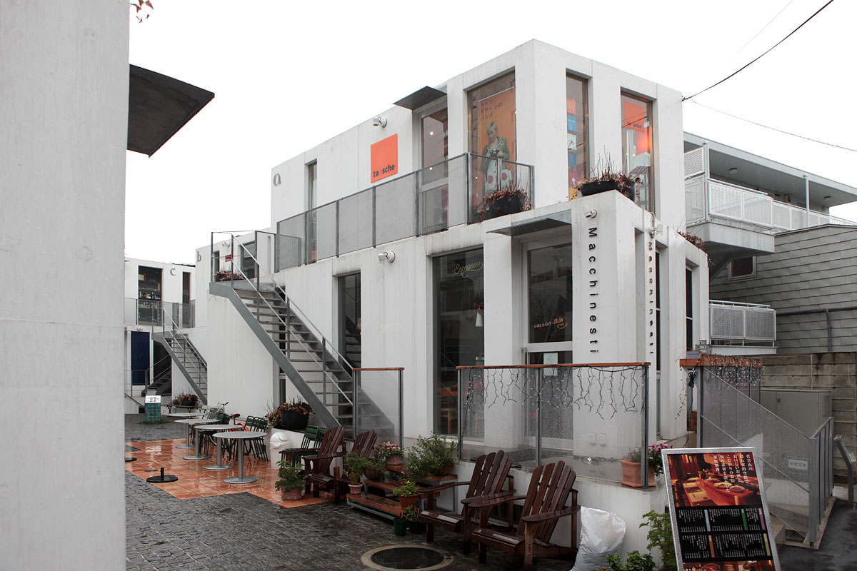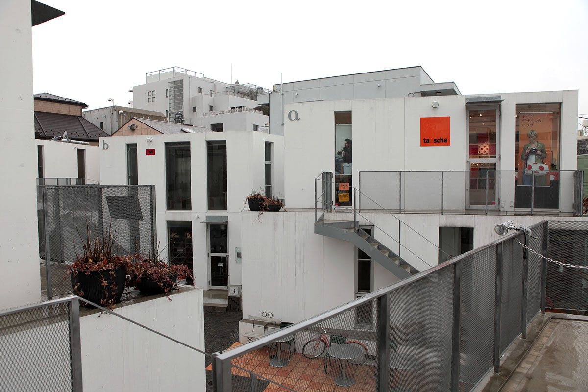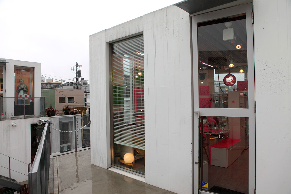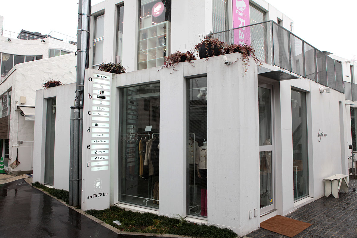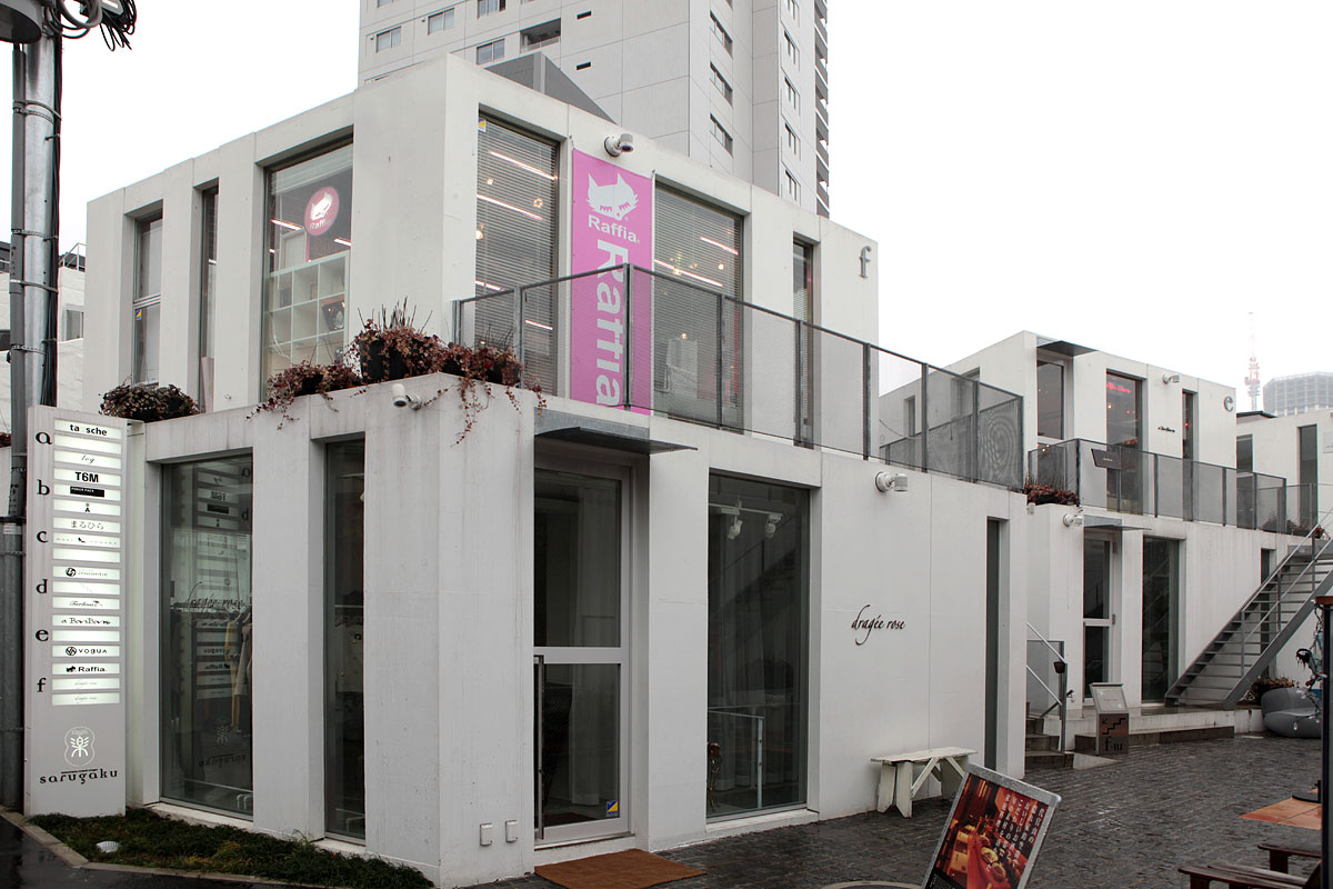 猿樂 Sarugaku位於東京的代官山(Daikanyama),由一棟棟供出租使用的建築體組成,好像美國常見的大型 OUTLET 那樣,各式各樣的店面分佈於建築量體當中。由於日本法律的使用規範,業主只能在窄小的基地上建造許多小型建築物,建築師平田晃久(Akihisa Hirata)決定將這些小型建築物設計成像山丘一般,而這也讓建築物間的空間產生了如同山谷的空間,人群和店面的展示物就在這個山谷中不斷流動,每個店面也藉著這種山脈狀的建築物得到了擴大的視覺效果。