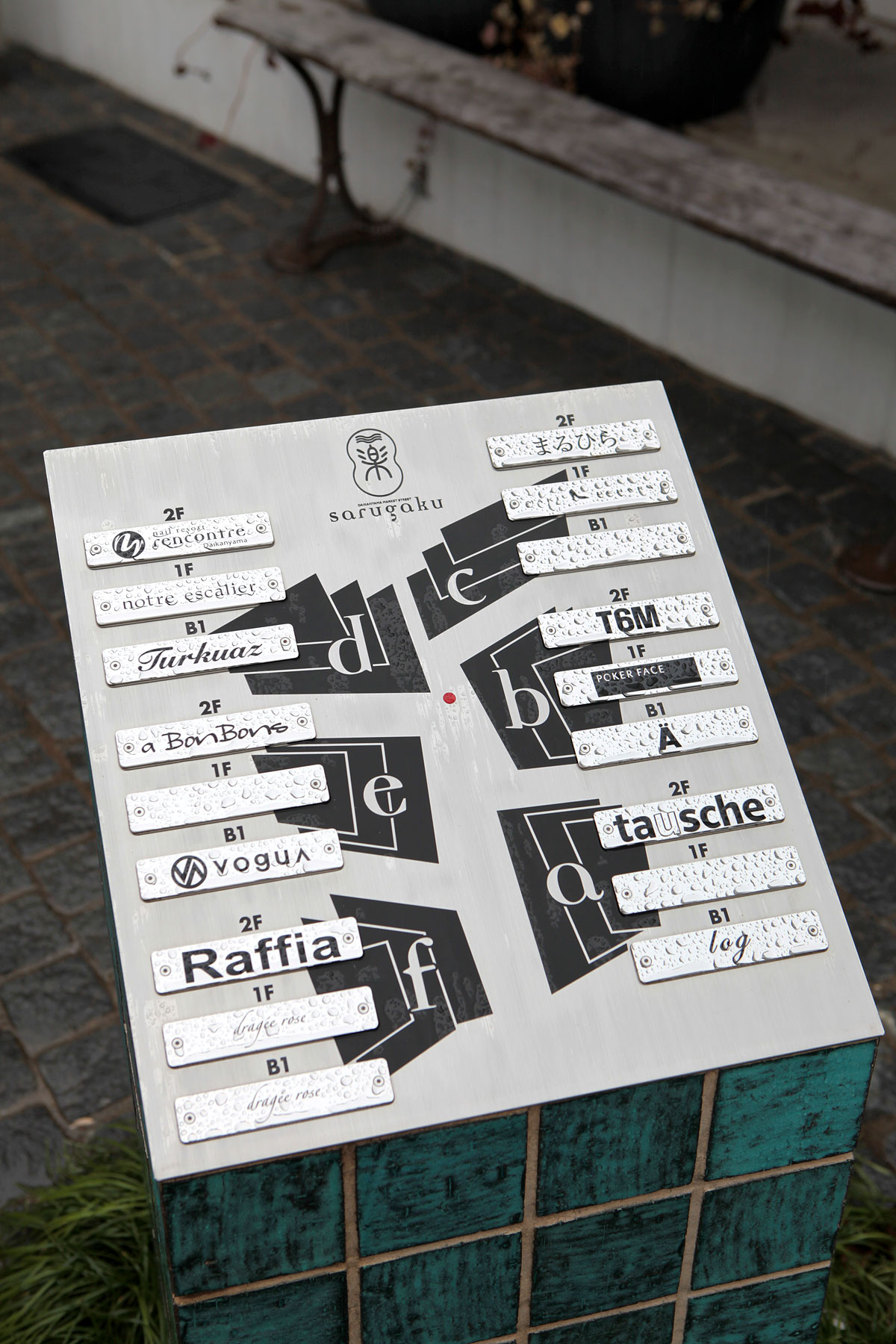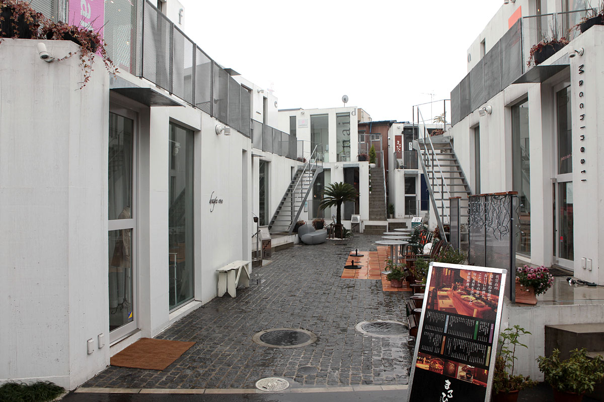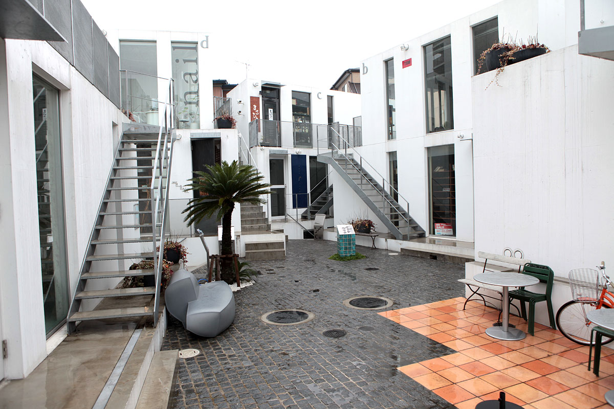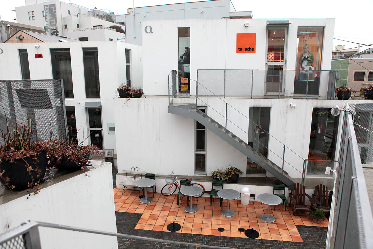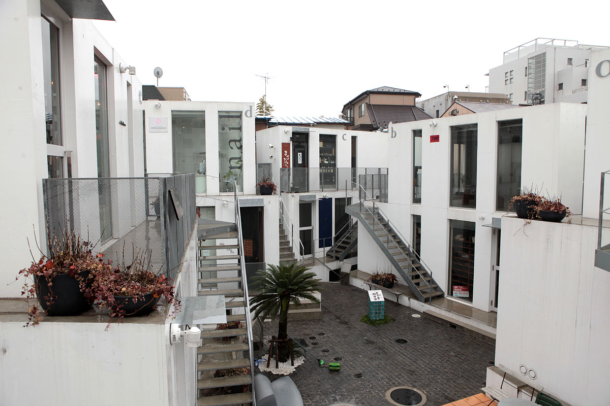 猿樂 Sarugaku位於東京的代官山(Daikanyama),由一棟棟供出租使用的建築體組成,好像美國常見的大型 OUTLET 那樣,各式各樣的店面分佈於建築量體當中。由於日本法律的使用規範,業主只能在窄小的基地上建造許多小型建築物,建築師平田晃久(Akihisa Hirata)決定將這些小型建築物設計成像山丘一般,而這也讓建築物間的空間產生了如同山谷的空間,人群和店面的展示物就在這個山谷中不斷流動,每個店面也藉著這種山脈狀的建築物得到了擴大的視覺效果。
