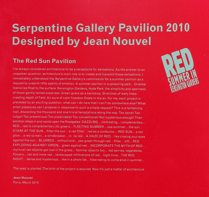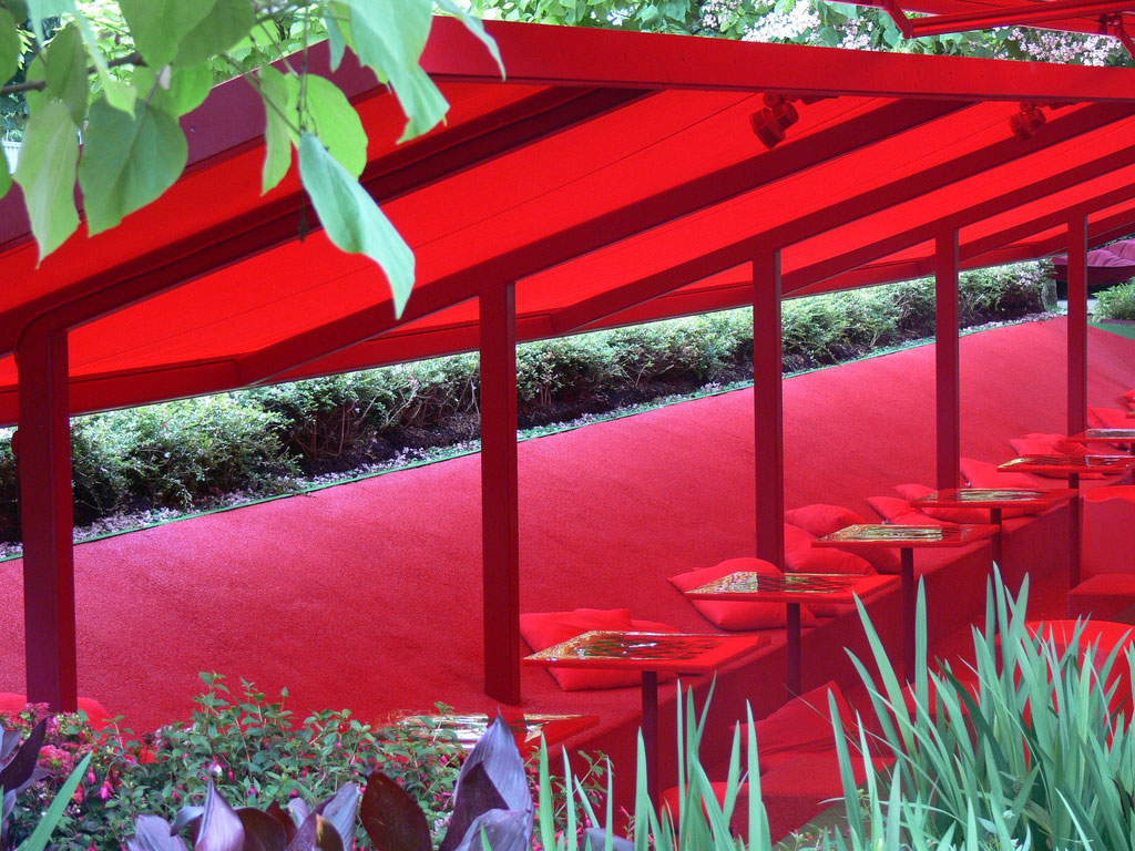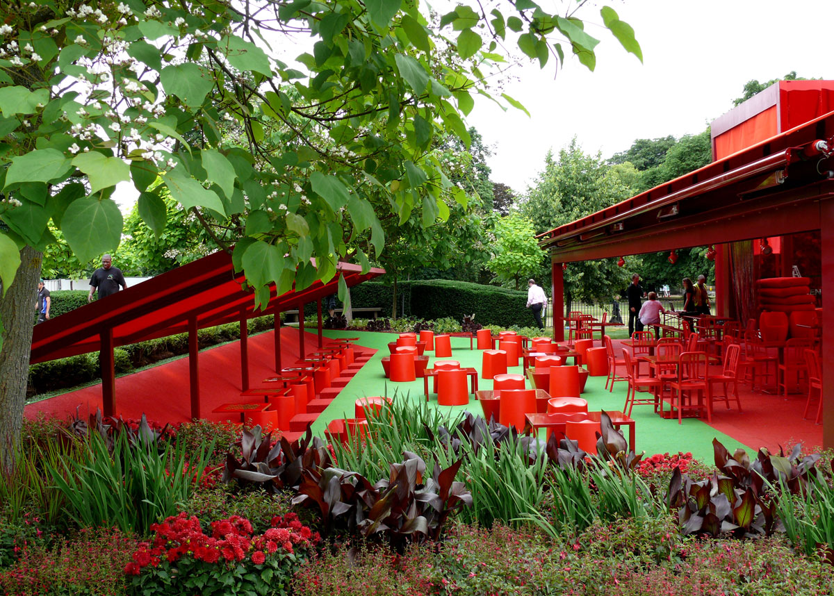 In the end, he settled on a bright red, adjustable structure incorporating huge blinds that will contrast with the natural greens surrounding it and reflect the sun, as well as echoing the red of Lon¬don's buses, postboxes and old telephone booths. It will be a playful space, even including table tennis to encourage summer fun and games. 'It's more like an artwork than traditional architecture,' Nouvel says. 'What is exciting is to create emotions and unexpected sensations. I hope it will be a pleasure to come here.'