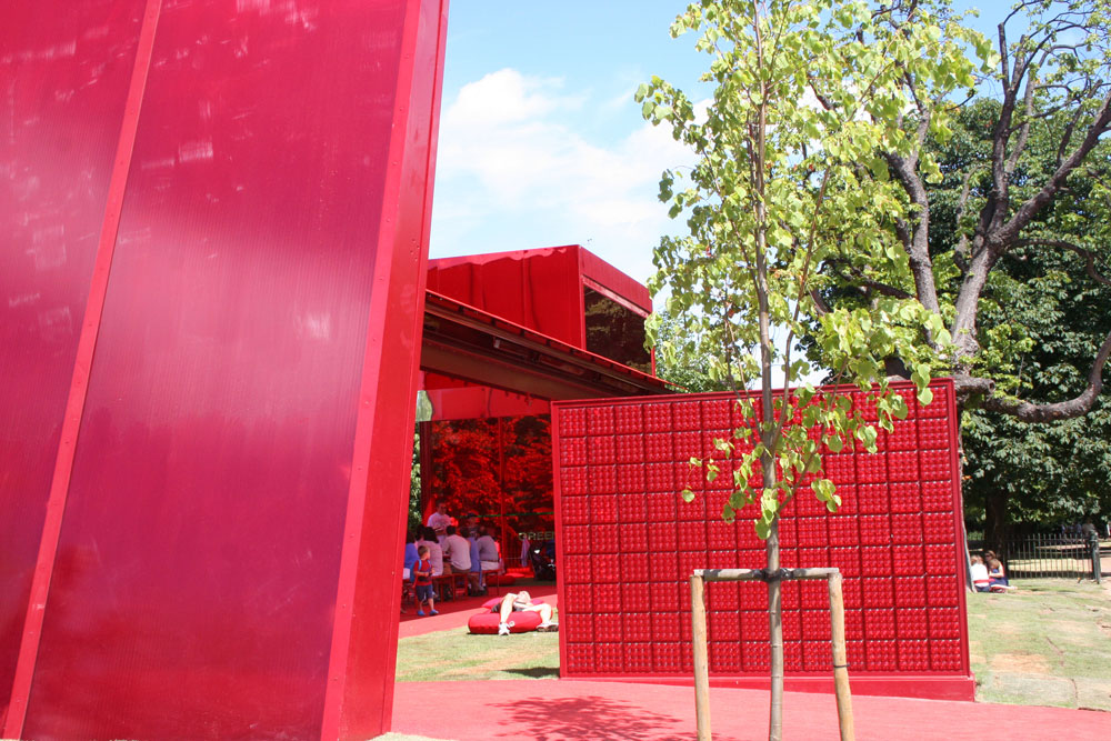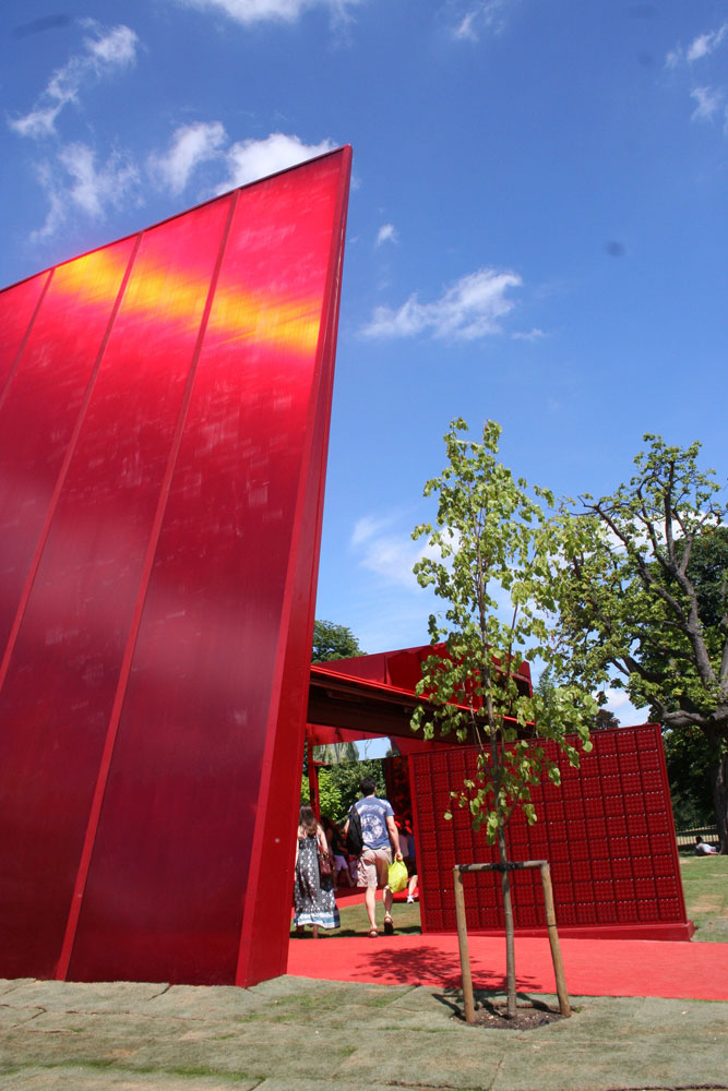 A year later Peyton-Jones went to visit the great buildings of Brasilia, attended rehearsals for a carnival celebrating their veteran architect Oscar Niemeyer, then went to his office overlooking Copacabana beach and returned bearing sketches for the 2003 pavilion; Brazil's President Lula was among the VIP visitors that year.