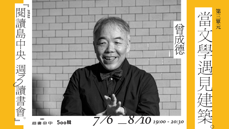 【中央書局X500輯 週三讀書會】曾成德|當文學遇見建築 2022年7月6日~8月10日每週三