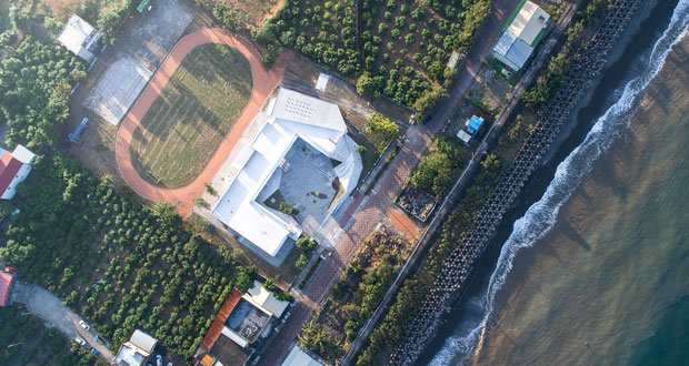 鳥瞰加祿國小枋山分校,學校距離海岸不遠©趙宇晨 加祿國小枋山分校/丁尺建築師事務所