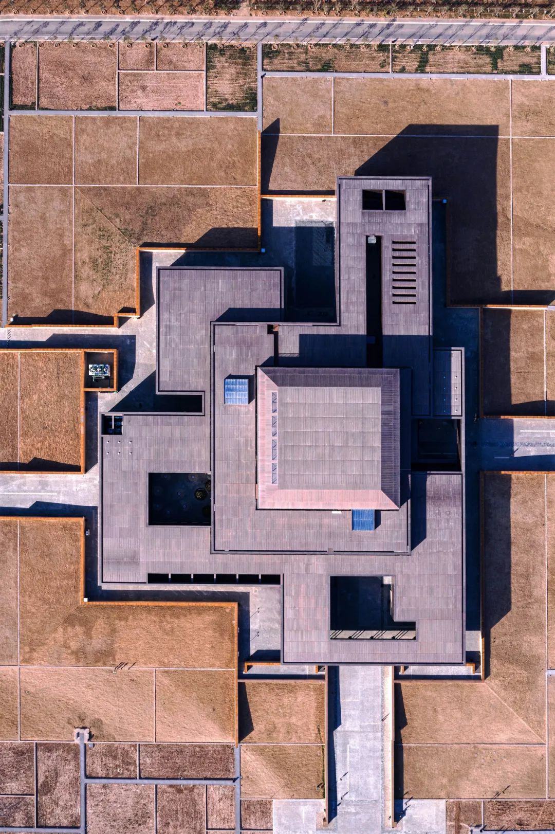 建築設計的主要特點是尊重遺址的原生狀態,試圖營造曠遠幽深的特殊基地氛圍。設計概念來源於一幅考古發掘的現場照片:曲折蜿蜒的考古現場呈現著不規則的延伸狀態,我們希望博物館建築也能呈現出一種“不定形”的狀態,以避免過於單一的解讀,最終發展出一個層層漸進的空間序列來實現這個不定形策略。