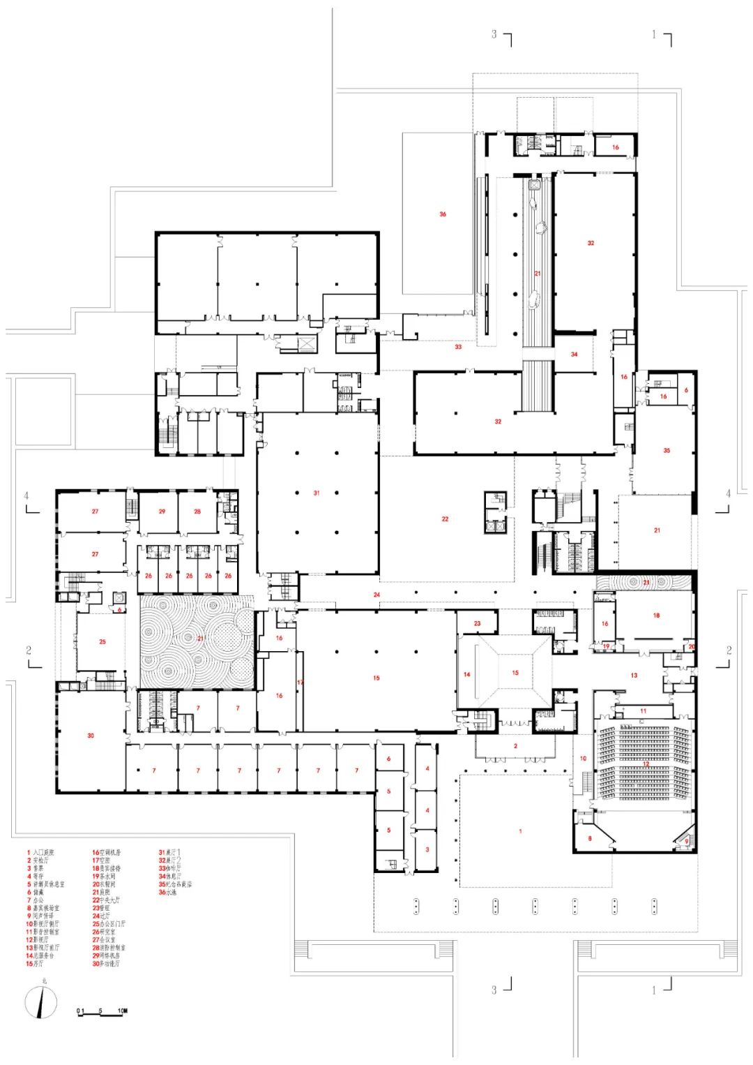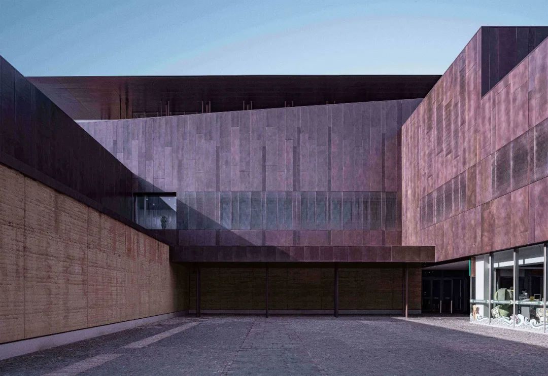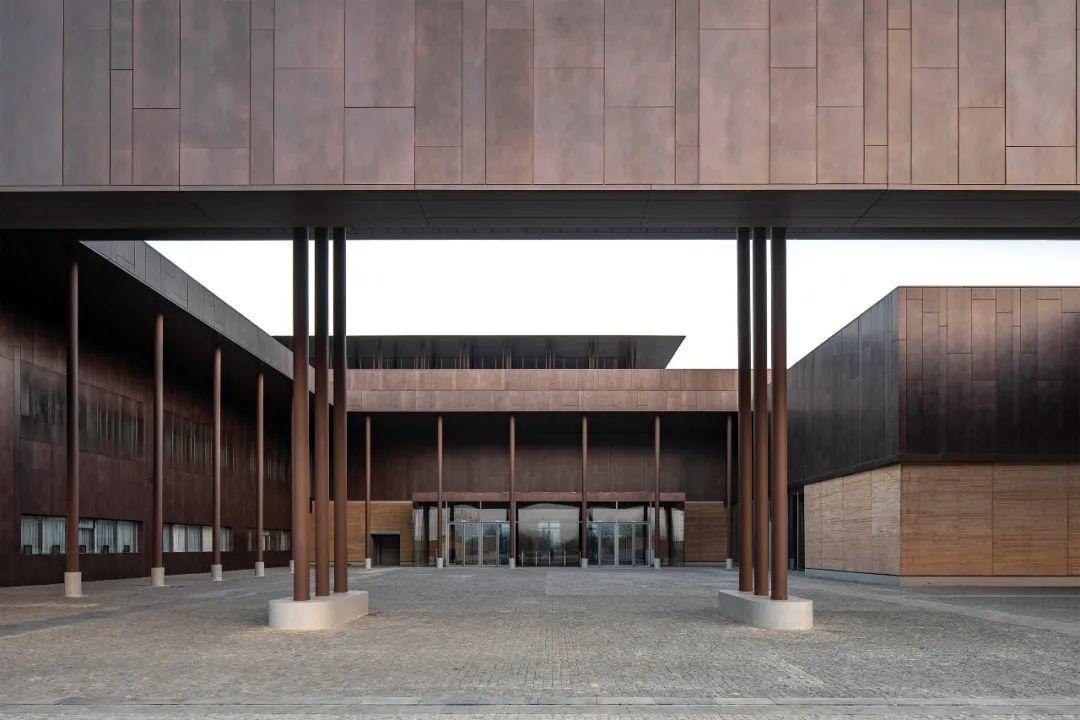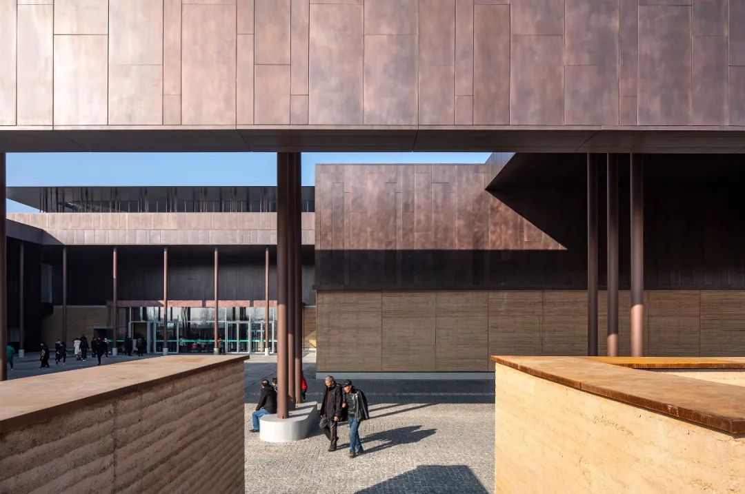 在設計中大量採用銅板帷幕牆、手工夯土以及與之匹配的清水混凝土工藝。其中,夯土總量超過4000立方公尺,成為目前世界最大的單體生土建築。