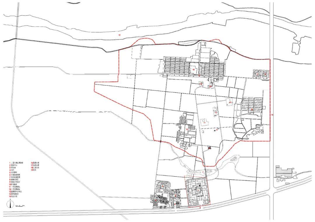 提出了遺址公園與鄉村聚落發展整合規劃的新思路。在確保遺址區內的宮城遺址以及井字型大道完整展示的前提下,盡量將公園服務設施與現狀村落集約建設,以帶動村莊就業和村落基礎設施的更新,特別將遺址公園的訪客中心結合西南側的村莊整體規劃建設,形成以遺址博物館為中心的一體兩翼、聯動東西的新格局。
