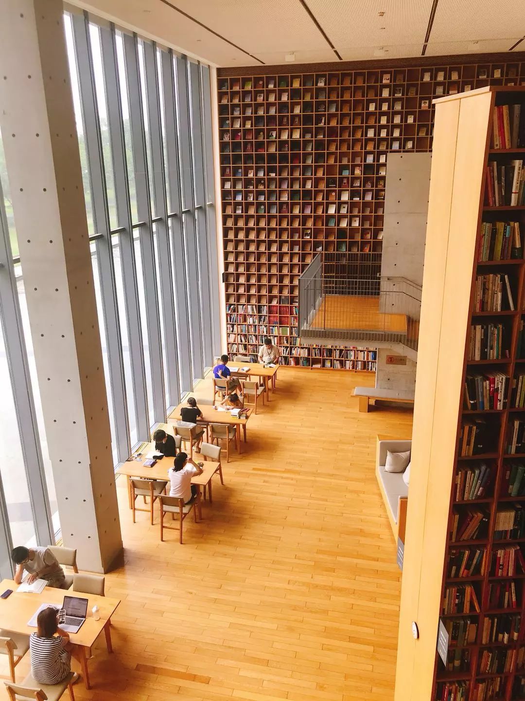 蓋在水上,巨型的玻璃房圖書館,無論在哪一個樓層,都有自然採光的自習室。