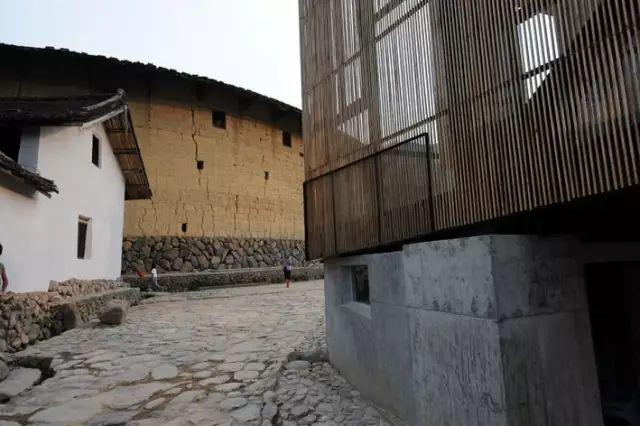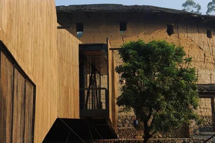 小村落名叫下石村,雖屬同一個村,早年卻是由兩個圓形土樓組成,中間橫跨一條溪水,傳說舊時兩個土樓的家族互為仇敵,遂劃渠為界,互不往來。橋上書屋的概念由此而生。土樓之間,溪水之上,橋與學校,舞台與基地,意在連接「現在」,「過去」與「未來」。