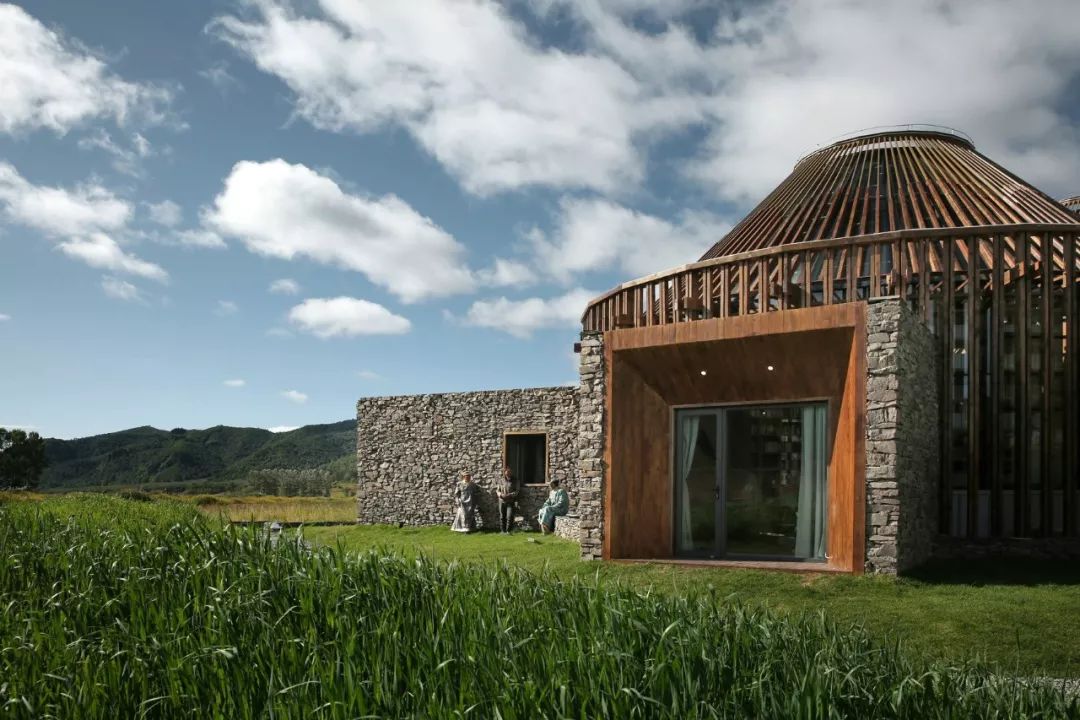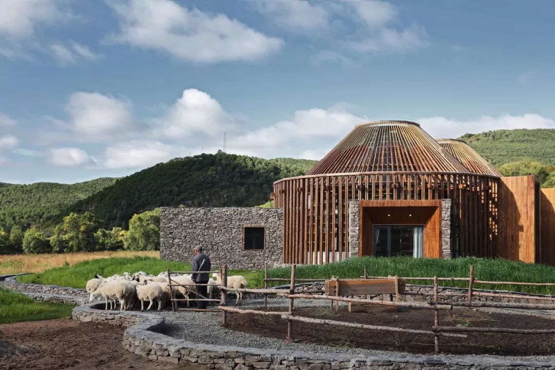 雙環圓在中國傳統文化裡代表吉祥如意,在木蘭圍場此一設計裡,兩者結合形了雙環蒙古包的建築圖底,結合幾個突出空間的幾個石頭塊,拓展建築室內的機能屬性,不同文化之間的相互滲透,形成社區活動中心以及民族大家庭的客廳。