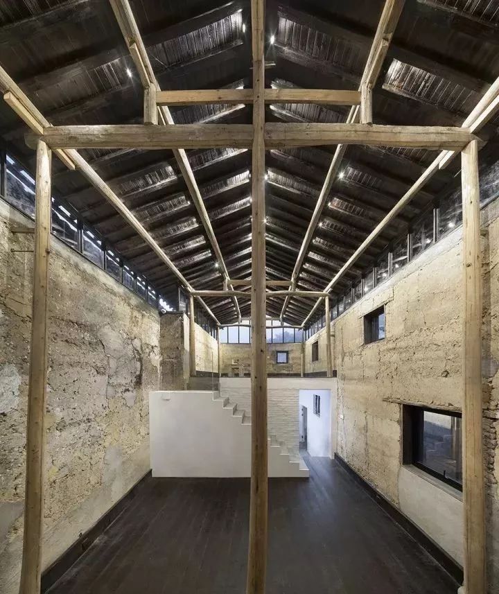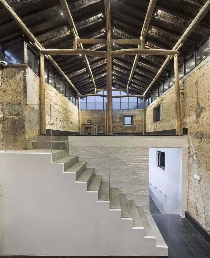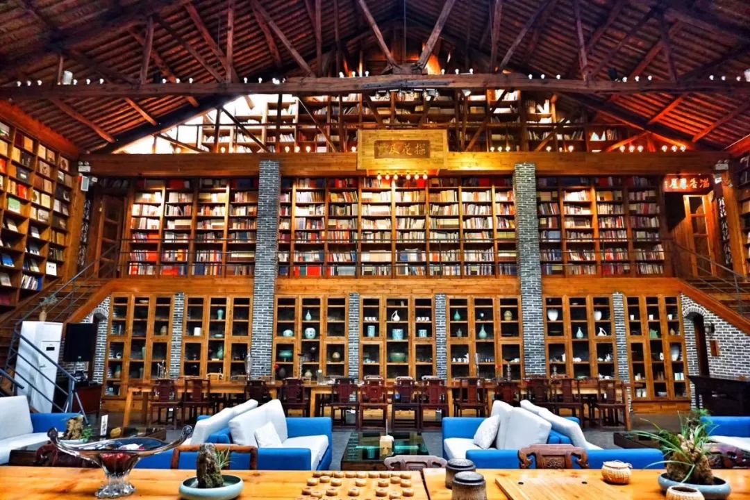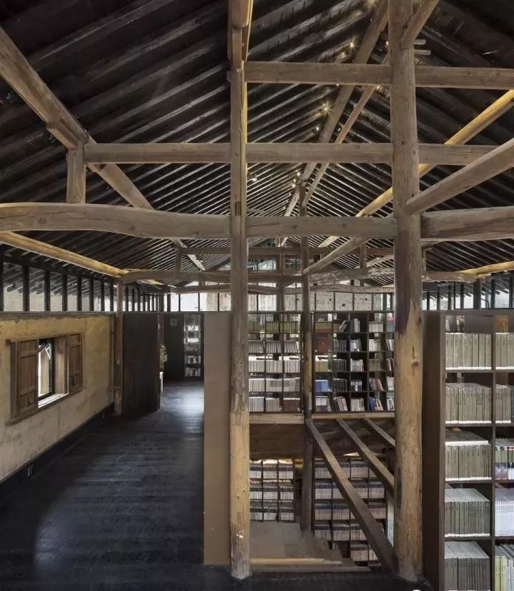 這座吐納於雲夕之間的圖書館,位於海拔600多公尺的桐廬縣莪山鄉新豐民族村戴家山,隱匿於一片黃泥房中。圖書館由兩座毗鄰的畬族民居改造而成。改造後的圖書館,依舊保留了古老民居的木石結構,一幢為藝術咖啡館,一幢為圖書館和活動空間。