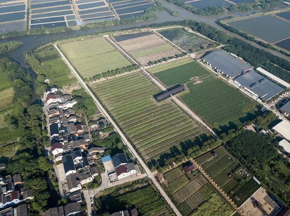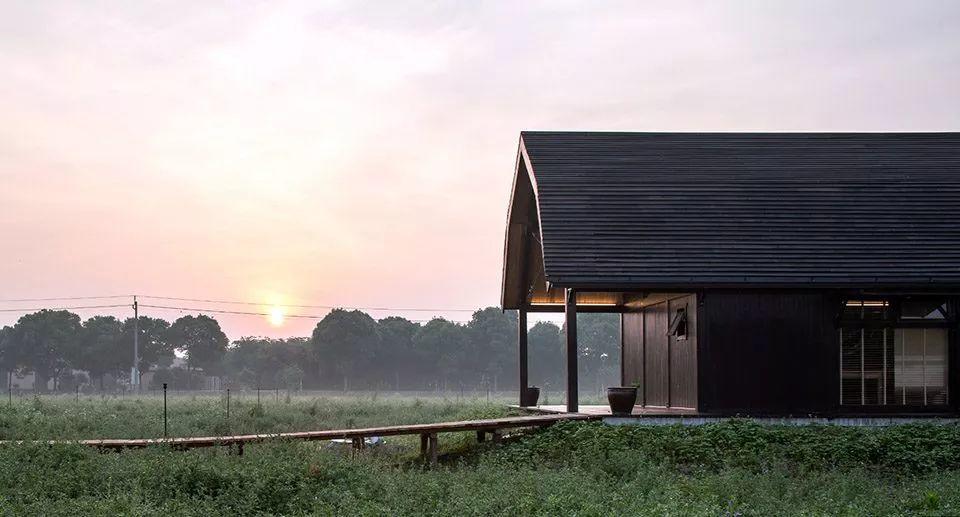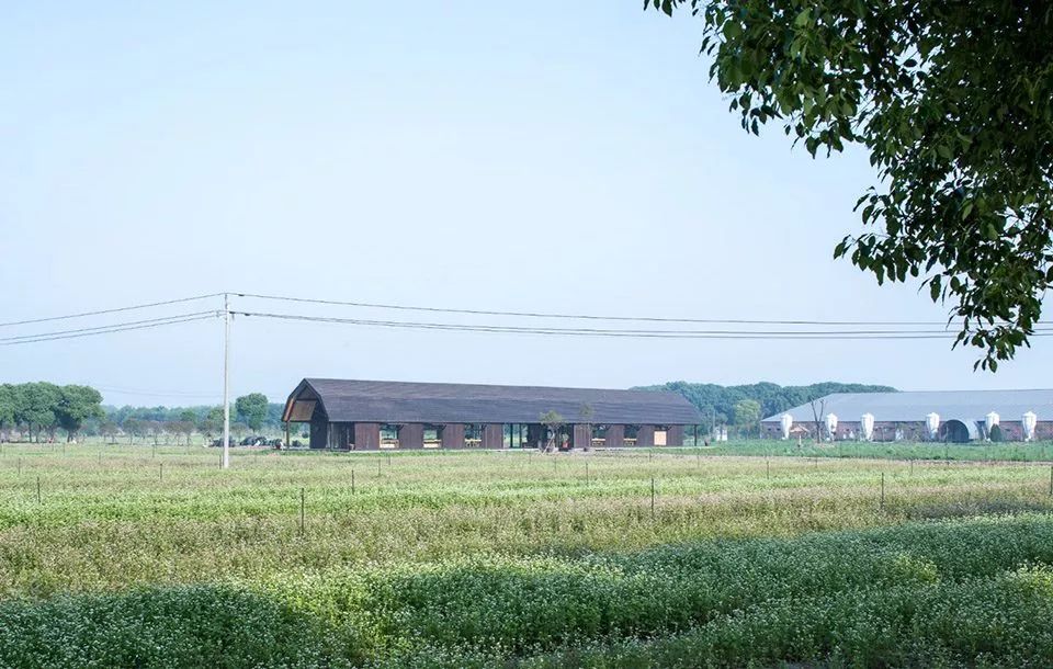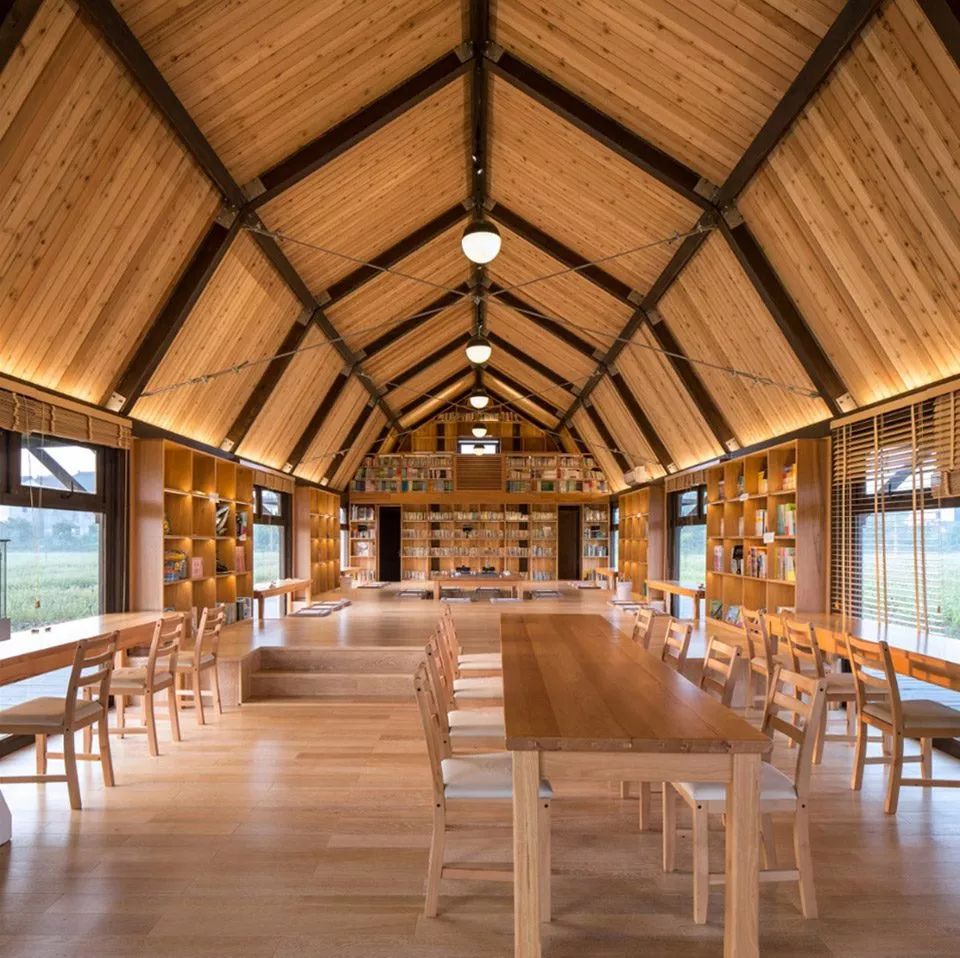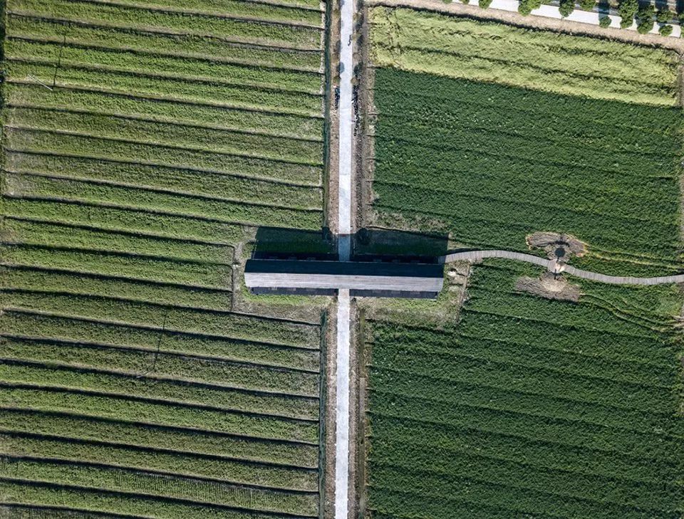 ▼圖書館安安靜靜得躺臥在田中央,成「一」字形