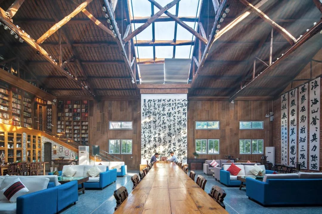 你若恰好讀過柳宗元的《永州八記》,春夏山花爛漫,秋冬層林盡染,山谷、溪流、田野、竹海,勾勒出一處詩意棲居的水墨田園。如今放到莫干山,莫干山居圖便成了最佳代言。它有著高達兩層樓的書牆,讓人置身書海,彷彿穿越到巴黎的國家博物館。
