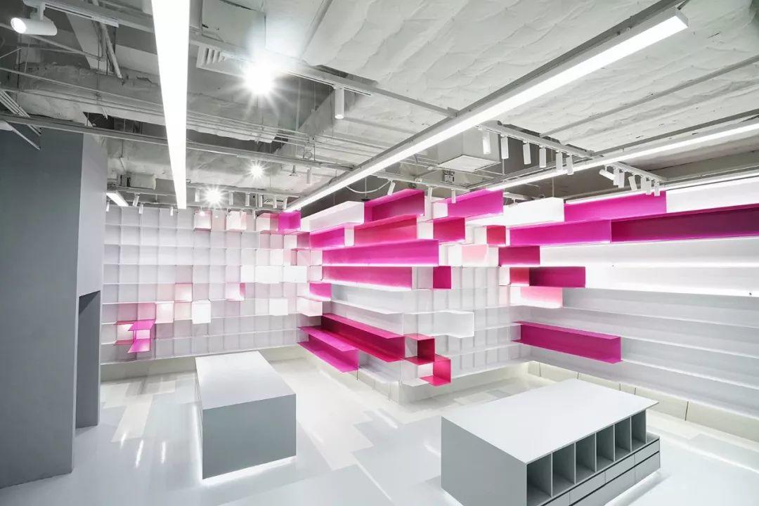 言几又杭州店,位於錢江新城來福士廣場內,延續對設計與城市關係的探索,整個空間以簡潔的線條勾勒出視覺第一印象,在色彩上以田園木色為基調,呼應山川草木自然溫暖的氣息,創意天花是以不同的形式對自然及杭州元素進行的視覺化表達。來訪者進入空間的儀式感與體驗感。