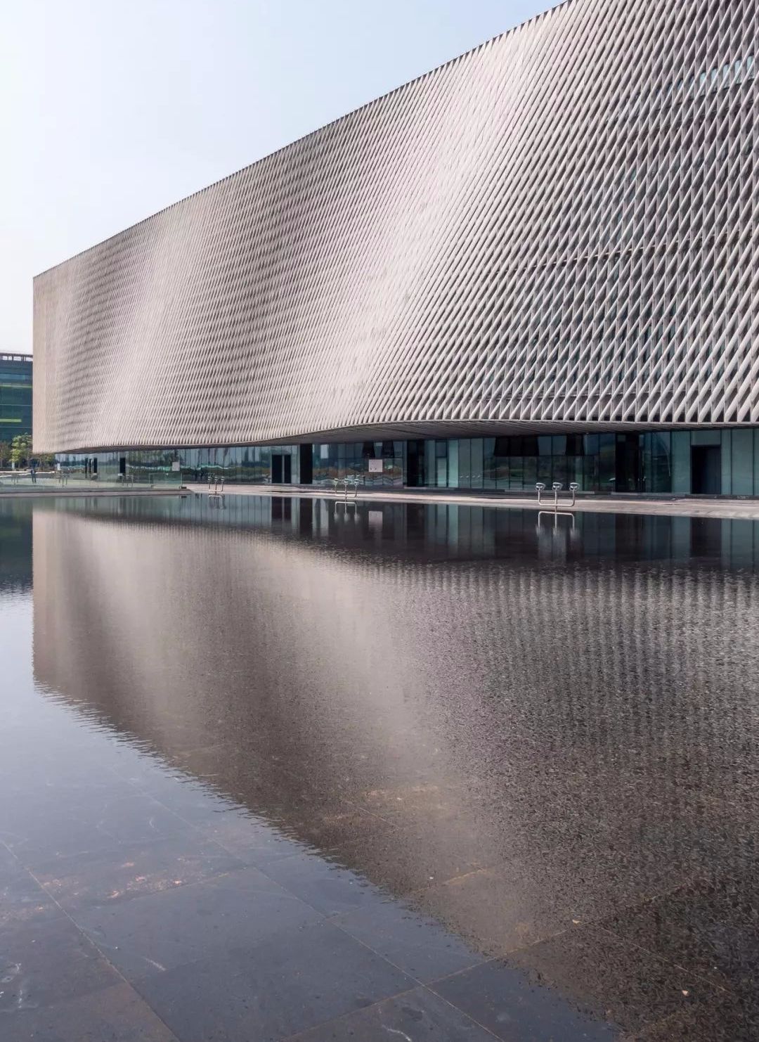 位置就在繁華的寶安中心地帶,附近還有壹方城、寶安體育中心、寶安少年宮…寶安圖書館新館被不少人誇讚是寶安最美的圖書館,它的外觀,從點到線再到面,組成的波浪表面極具藝術感,在大片水波的映襯下,還多了些靈動感。