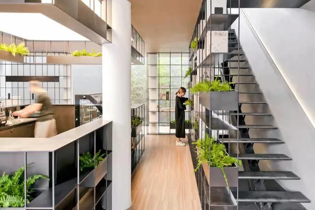▼沿河的立面用節奏較為舒緩的矩形空間排布開來