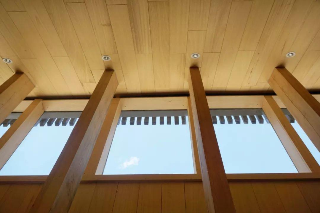 為了在偏僻山村中凸顯其存在,設計在視覺上回應了山谷的空間,以出人意料的雙曲面屋頂形狀讓人們飽覽風景。屋頂結構向上攢起尖頂,成為地震和災後重建行動的紀念碑。