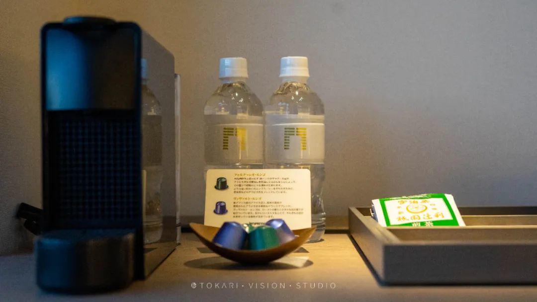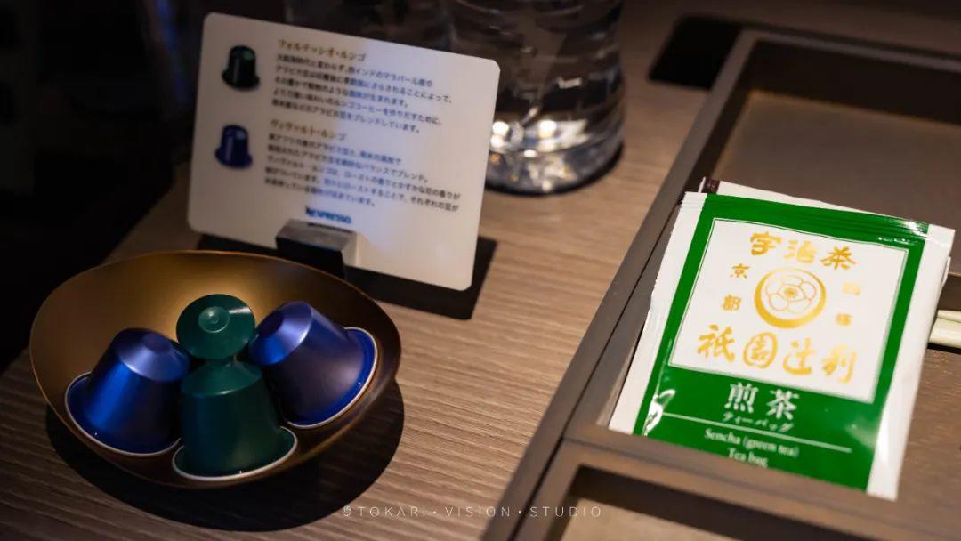 房間裡有京都特產的茶包,也有簡單的膠囊咖啡機,空間對於也是足夠放下比較大的行李,空氣清淨機、各種洗浴備品也都是THE GATE自己品牌的,很是用心。