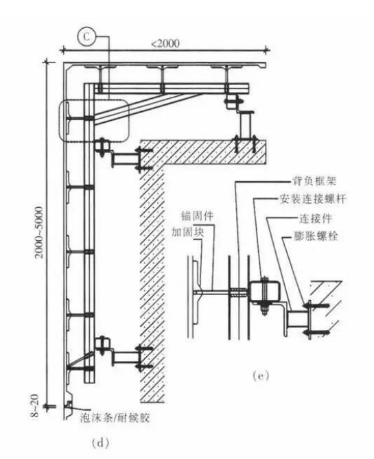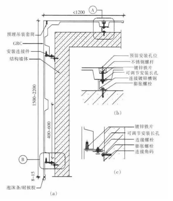 GRC帷幕牆與建築主體轉角連接構造示意