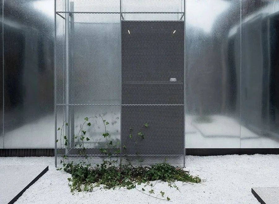 用金屬擴張網樹立兩片高聳的牆