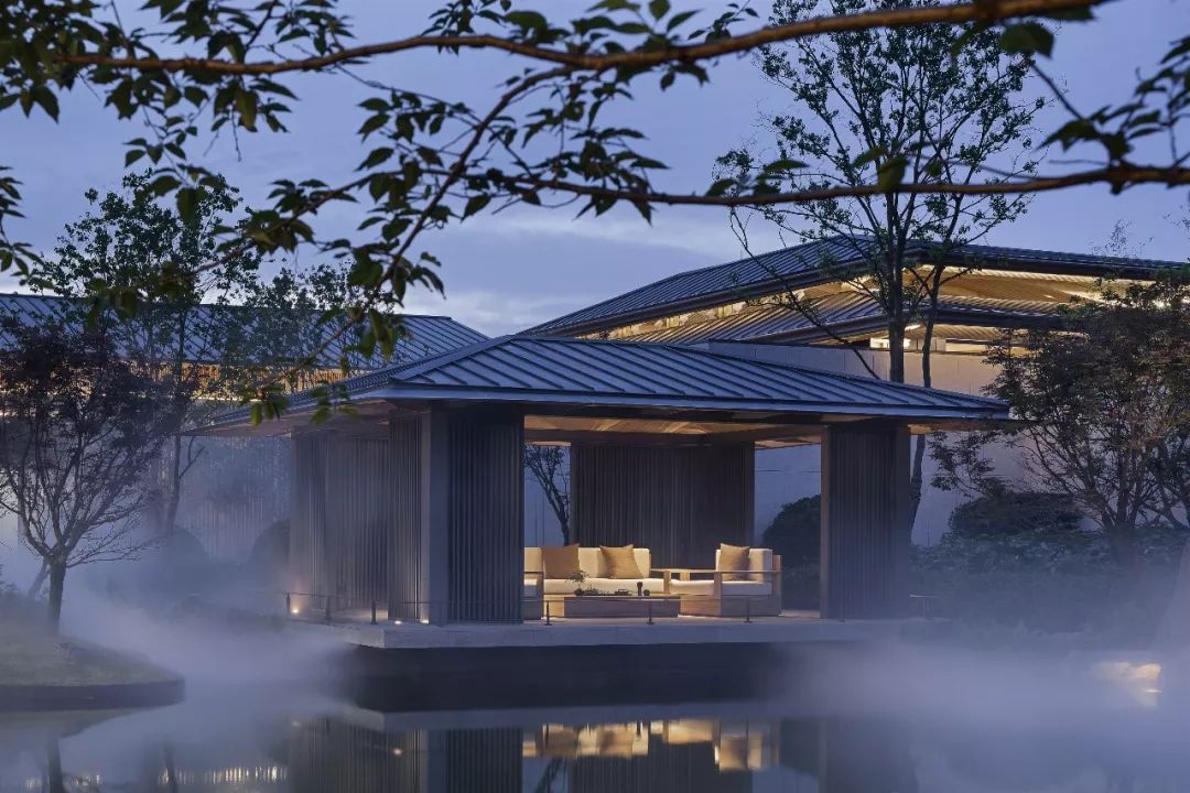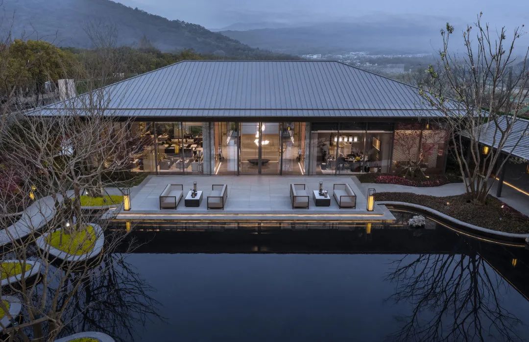 江山宸院的屋頂運用加入現代語匯,集結唐朝精緻文化並融合宋代美學,空間於山水雲霧之間展開,獨樹一格。