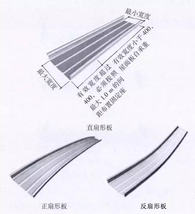 1)直板:適用於單坡、雙坡及半徑大於自然成弧半徑的單曲屋頂;