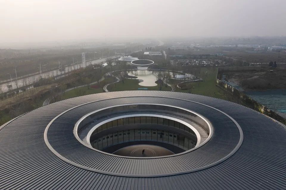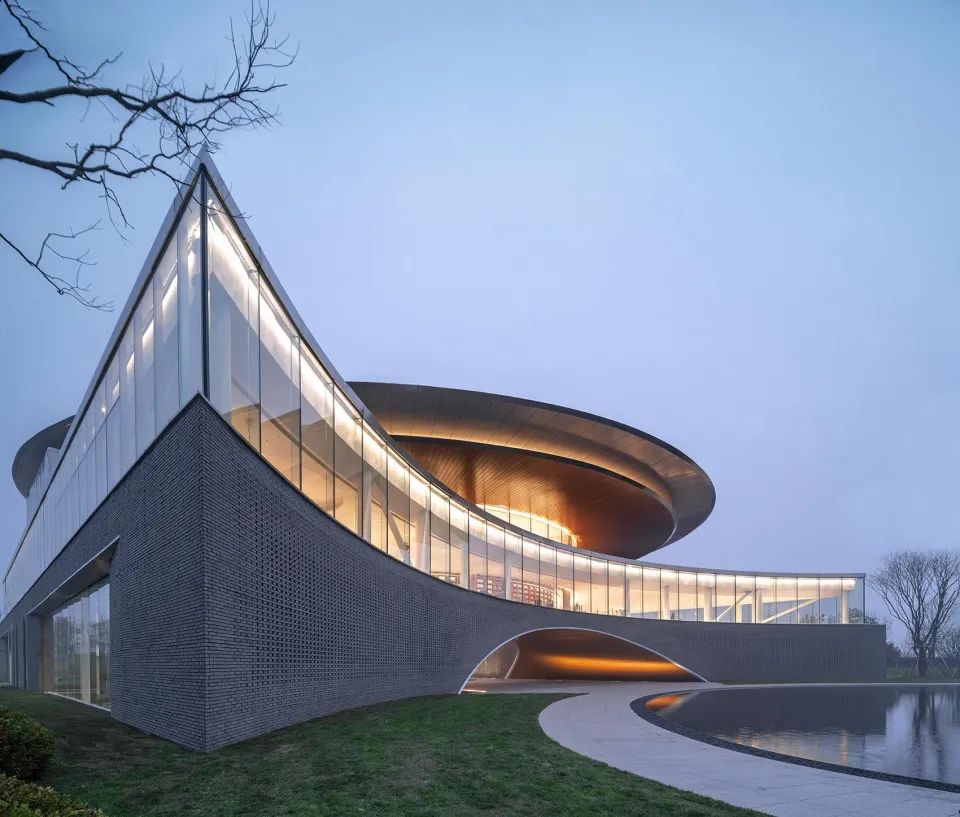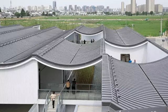 東原千潯社區位於蘇州市相城區,是一座給周邊社區提供各種公共服務的建築,虛實相生的空間設計融匯了自然與建築,波浪狀的鋁鎂錳屋頂如江南水墨畫般,獨具東方魅力。