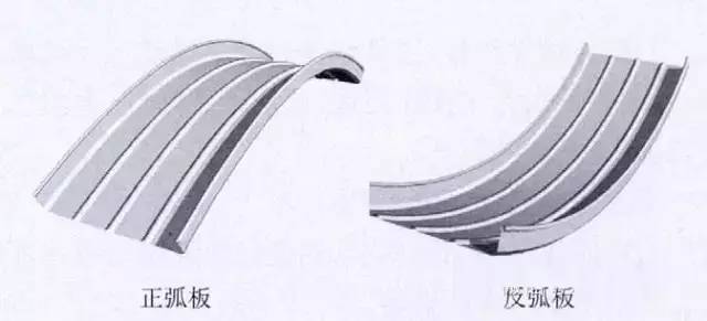 2)正、反弧板:適用於半徑小於自然成弧半徑的單曲屋頂;