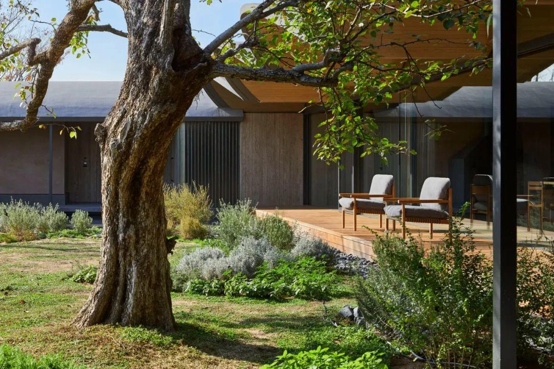 設計團隊決定將主要量體置於較高的北側,為花園創造一個較大場域,再用東西兩個量體將花園包圍,形成ㄇ字形佈局,西側量體包括玄關和獨立式日式房間,而東側量體包括了戶外起居用餐區,可以在庭院裡面活動。