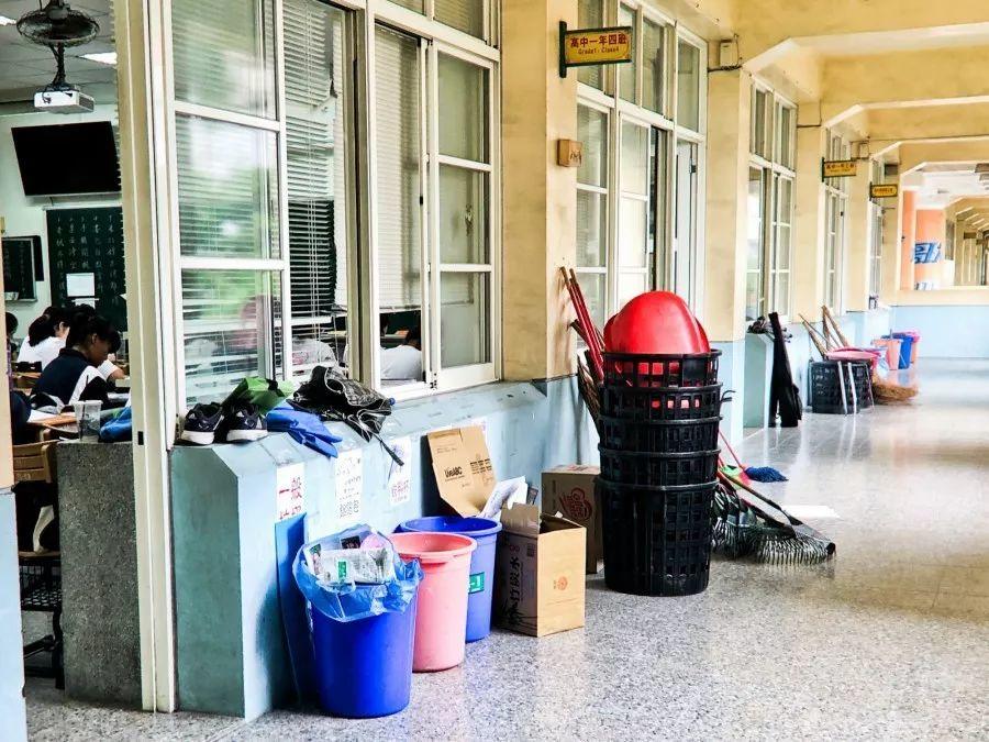 作為屏東歷史悠久、規模最大的完全中學,面臨走廊上堆放資源回收桶及外掃區掃具的凌亂狀況,不但造成視覺不良的衝擊,在環境衛生上同樣令人頭痛。