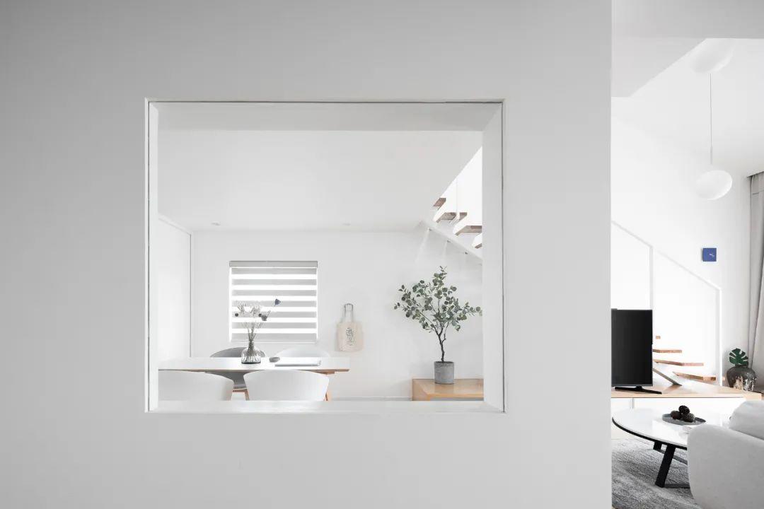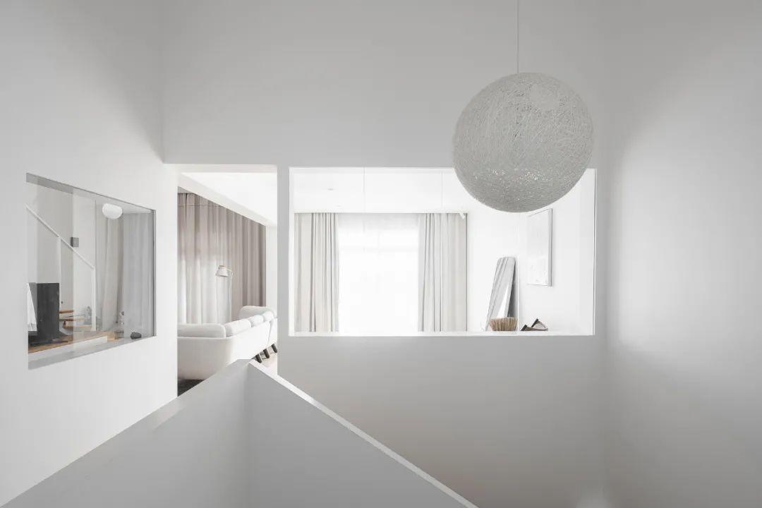 樓梯入戶處,我們設置一組與外牆窗錯位的同構窗洞,構築畫中畫的既視感。