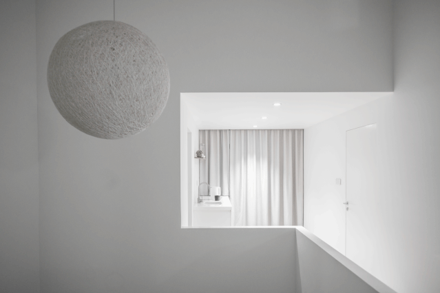 在日常機能區我們別有用心的將層高控制到2.2公尺,與之相反的樓梯間及起居空間的層高我們儘可能的還原到最大化,反差之下是明晰的空間,也伴隨著細膩的心情變化。