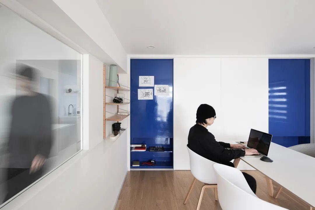靈活可變的工作牆,組合的櫃體可以靈活切換狀態。