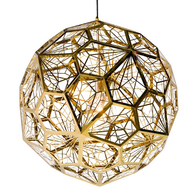 Etch Web吊燈是以黃銅或者鋼鐵製成,燈體遍佈的不規則五邊形形狀經過了60次試驗才合為了一個整體。