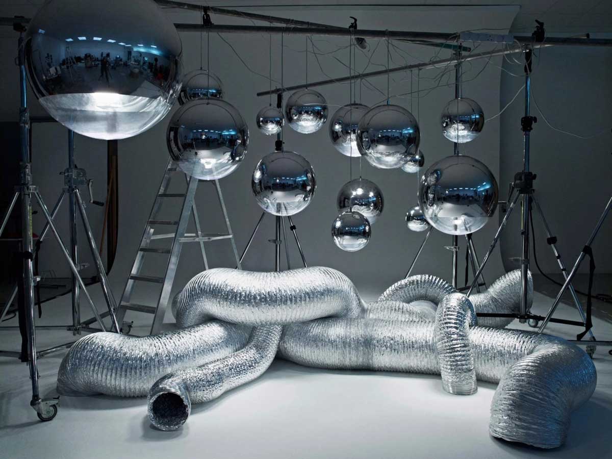 Tom Dixon不會在家中冥思苦想,而是在外面走走,藉由觀察以獲取設計的靈感,「鏡球吊燈」的靈感便是他從墨鏡和太空頭盔的反射鏡面效果中得到的。這款燈既有工業風又充滿生氣,單個裝飾或者高低錯落都有很好的效果。