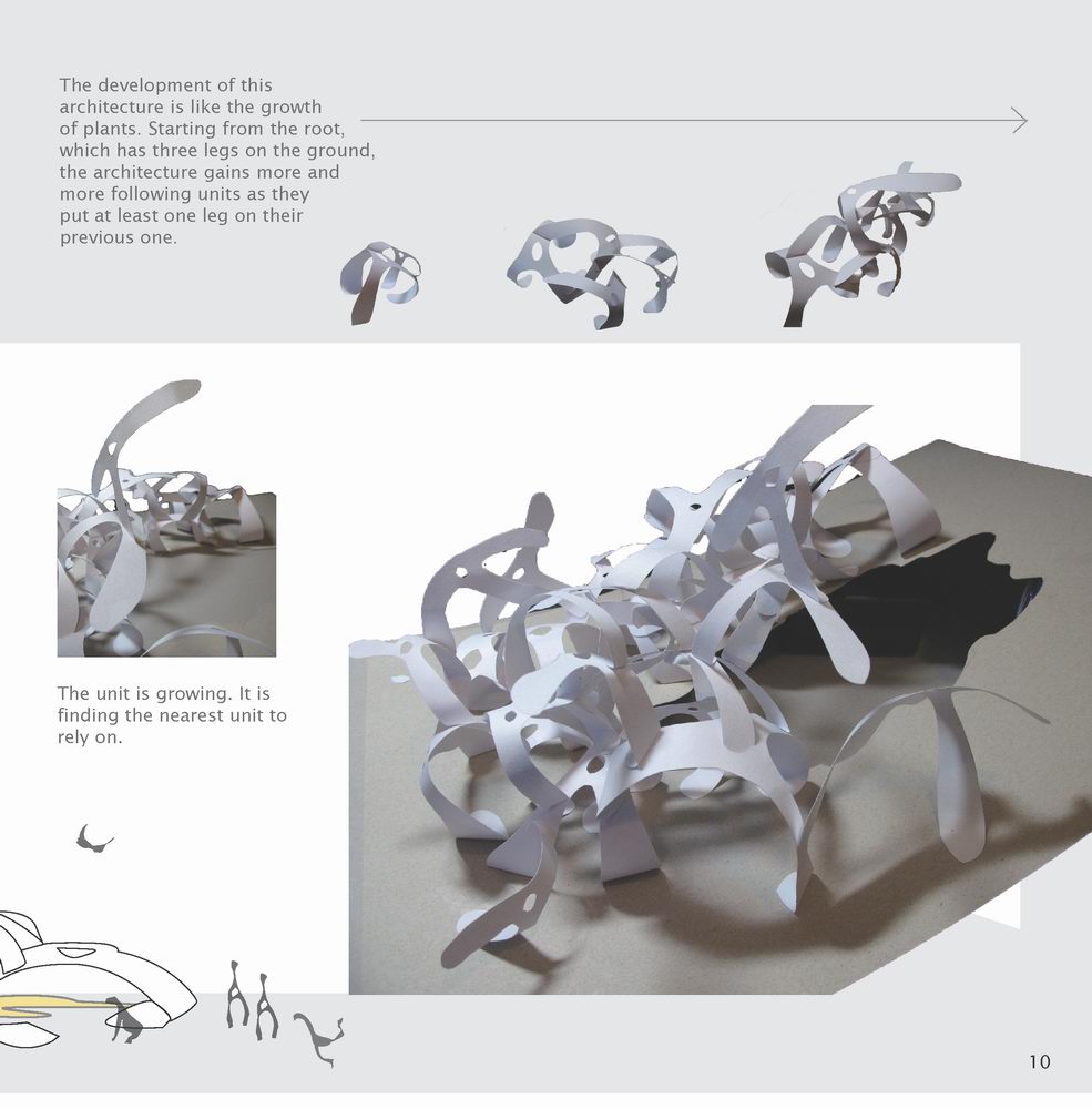 我 的作品集定義為「建築,作為一種夢想」也就是我想像中建築可以怎樣創造更好的明天,第一個作品是探討建築作為一種人造世界,外在的環境怎樣影響人的認知跟 創造;第二個作品是在土國旅行的一些感觸結合資工學到的數學遞迴推演,最後由2d到3d呈現;第三個 project Mico House 則是在台大土木系工作期間對於台灣抗颱建築的一種設計方案;第四個設計是參加DIWO互動藝術工作坊的題目發想,探討未來用地四個維度「介面」,創造三度 空間的可能性!最後一個設計是AA北京的團體作品,探討北京都會郊區邊界的過度方法,我的貢獻就是提供路徑演算法+實做Rhino Script,作品盡量以個人作品為主,有團體作品的話也要清楚標明組員以及自己在團體中的貢獻。每個作品都要盡量表現自己不同的面向,Project A 強調基地分析,Project B 就可以多點使用者設計諸如此類,讓評審知道你的各方面的能力。