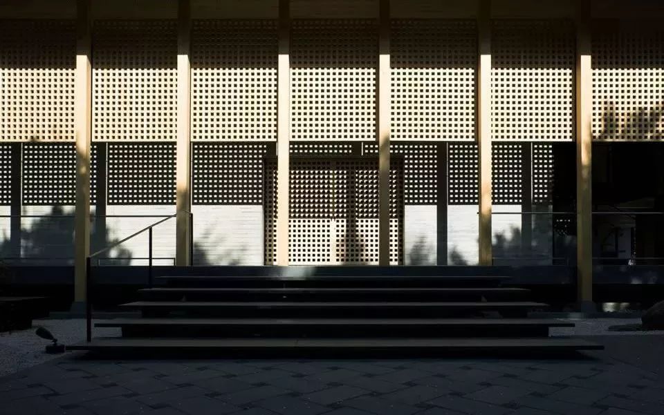 接待大廳、祭司住宿與辦公都是新建築,為訪客營造了輕鬆舒適的氛圍,且其入口直接面向基地內部的庭院。接待大廳的簷口比較低矮,能將照射進鋪滿白河沙的庭院中的漫射光線引入室內。