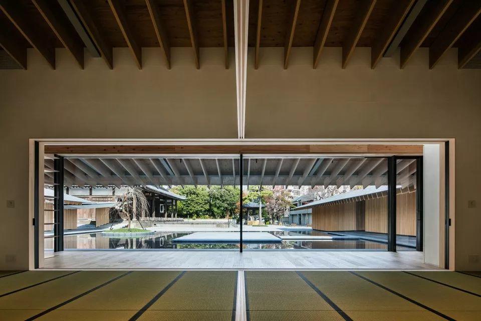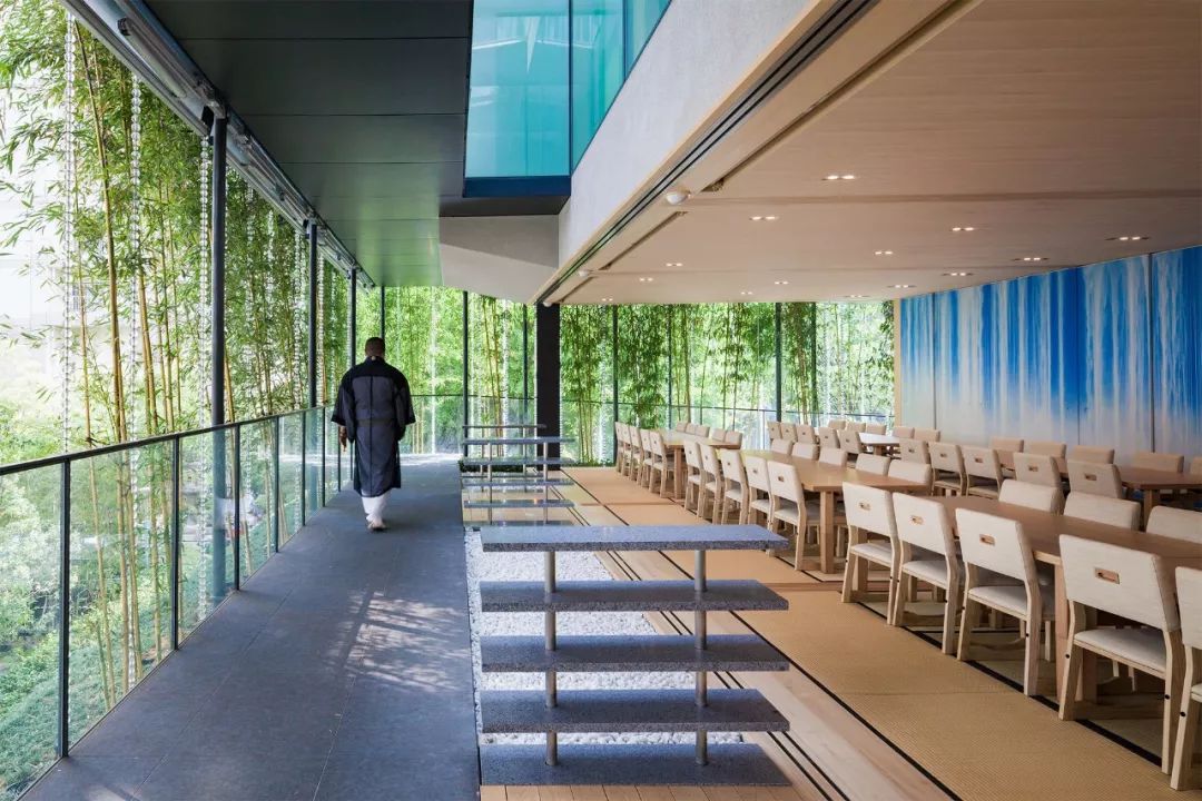 建築師在二層使用了開放式空間的理念,寺廟原有的竹子沿著二層的迴廊自然伸展,輕薄的綠蔭交疊出室內的蔭涼幽靜,遠看如懸浮在空中的庭院,與二樓屏風上《淨土的瀑布》的圖案相輝映。回向院的重建,獲得了日本2016年Good Design大獎,也讓這300多年歷史的寺院,有了新的社會意義。