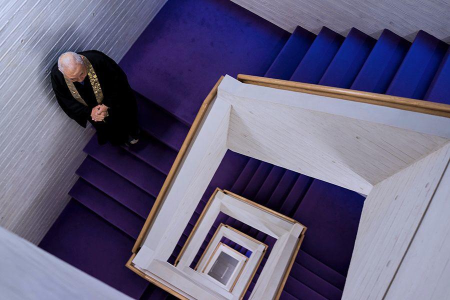 由玻璃圍成的光之迴廊內,光線的顏色隨著寺廟周圍的自然環境而變化,是建築師對佛教萬物皆無常的思想的映照。