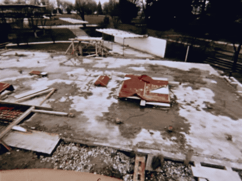 屋頂的結構完成後,合作夥伴們還為此開了一場慶功宴。在此就能夠看出單純的屋頂結構究竟是什麼樣子的了 ▼