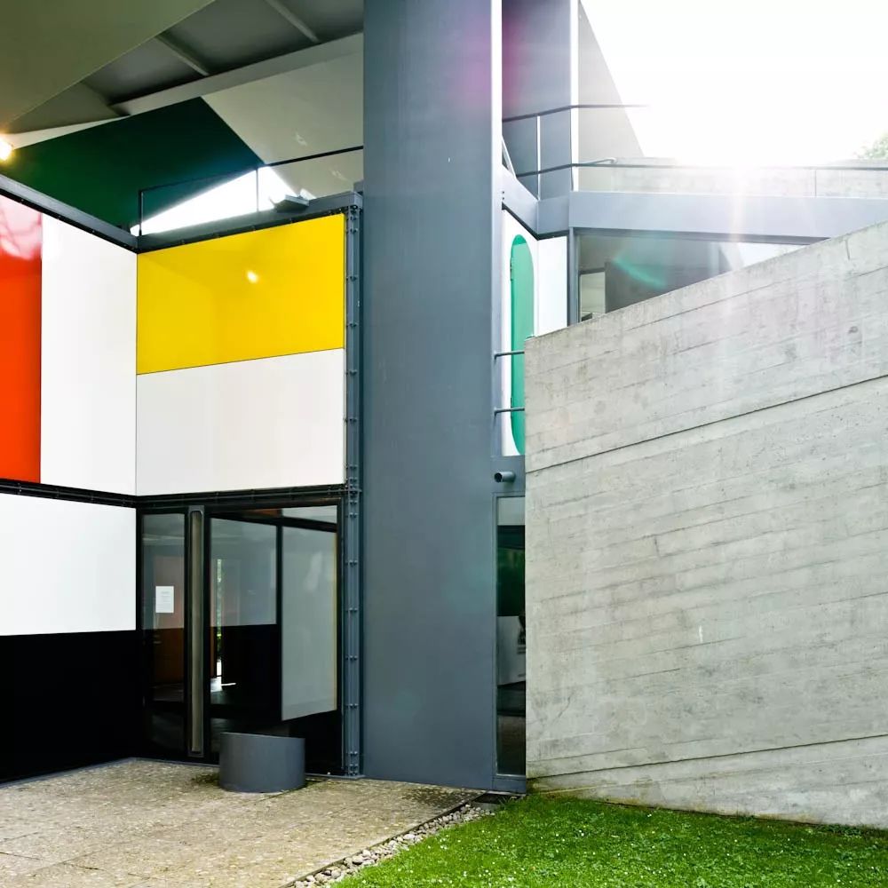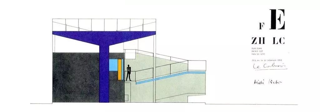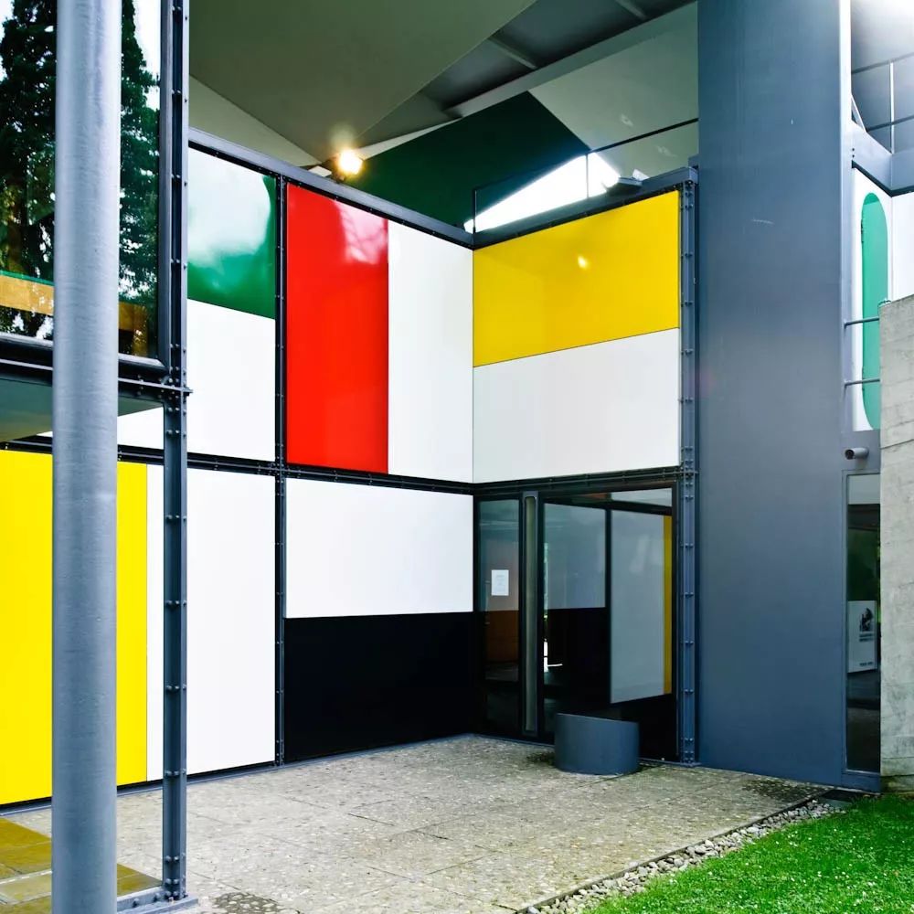面板上的顏色其實就是最能代表柯布西耶的一些顏色:白色、黑色、紅色、綠色和黃色。這些顏色分佈在整個建築的外部,有一種明顯的節奏感、層次感 ▼