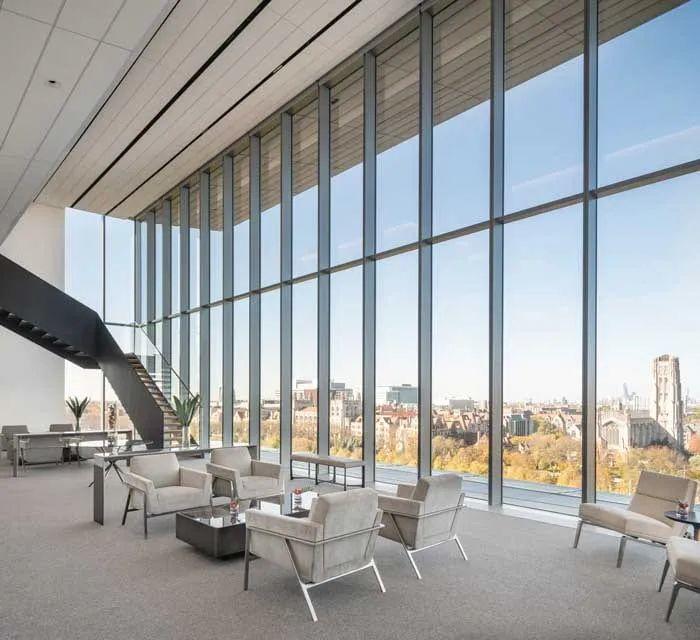 大樓由空間堆疊形成一個個社群空間,每一個空間中的會議及公共空間都提供了多元的環境,具備多種性格,正式、休閒、平靜、活潑、集中、懶散、井井有條、單獨運作,建築中的每一個小社群空間中央都設有一個私人社交休息室,以打造群體的認同感和獨具一格的氛圍。