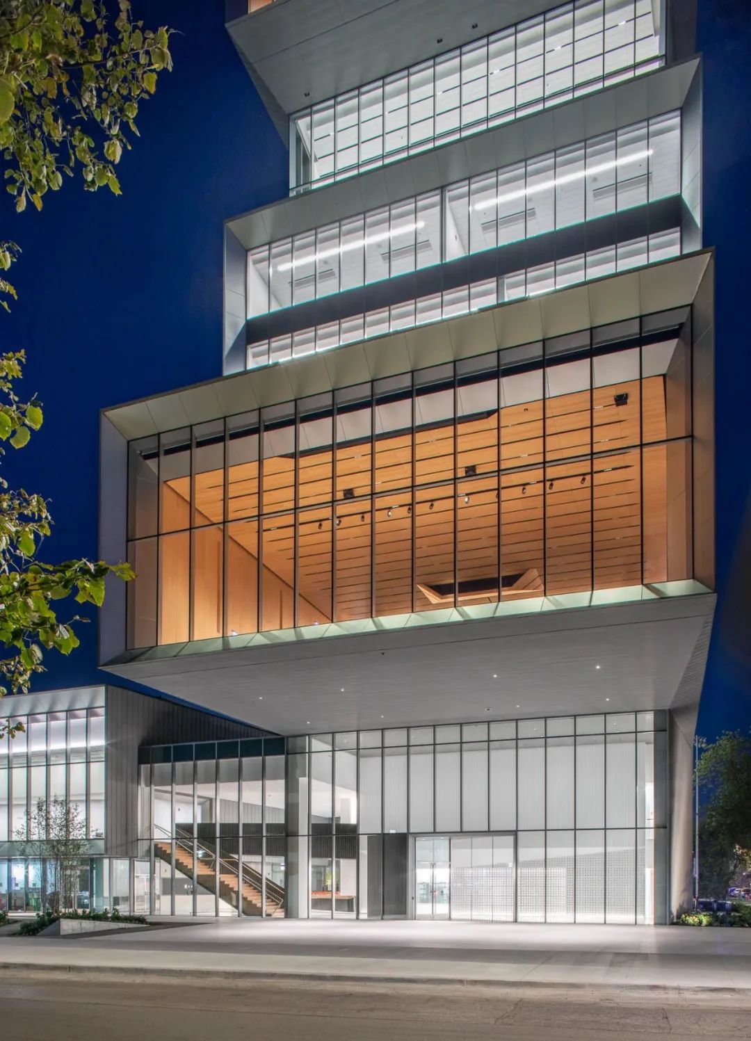 建築由兩層地面基底和一座細長的八層塔樓組成,它將為大學提供一個185個座位的禮堂以及許多必要的多功能會議空間,以舉辦研討會、座談會、講座及其他活動。