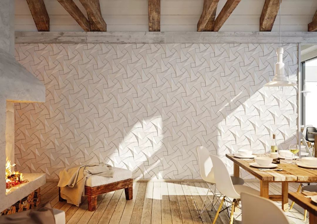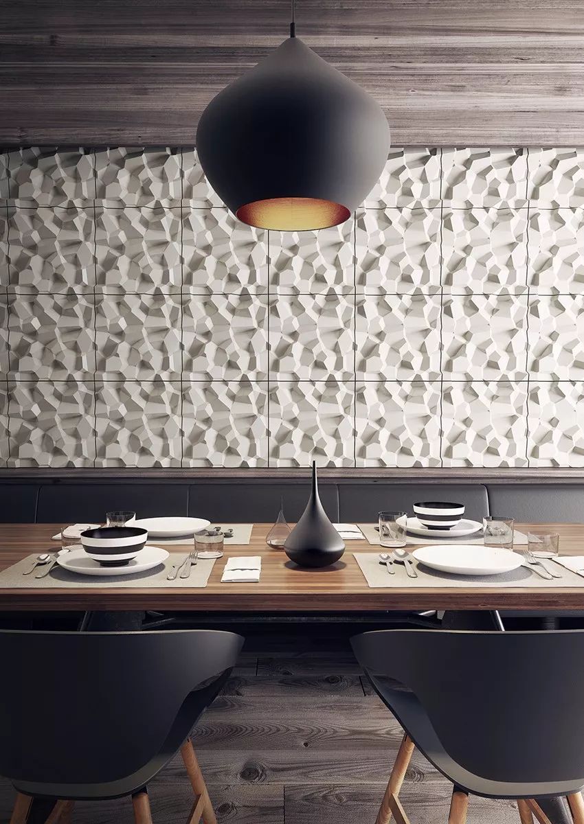 這種採用特殊纖維配比混凝土結合 3D 設計製成的牆磚,觸感柔滑,堅固耐用,可根據需要客製化各種設計和顏色。
