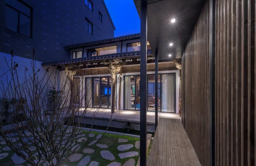 為保有傳統民居的合院形制,竹工凡木設計團隊維持《三禾別院》僅有三間套房的空間佈局,加上刻意設計的大量平台場域以促進人際互動。使用者可以選擇只使用單一臥房,抑或是在完整的合院內交流,包含花木扶疏的前後院、二樓露台與黑瓦斜屋頂等,平台設計的植入與傳統建築結構碰撞,以多元視角產生空間對話,新舊交接的設計處理手法,讓身處其中的人們不只是體驗住宿機能,而以多樣化角度感知空間的深層厚度與紋理脈絡。