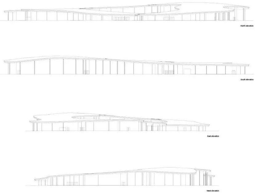 自由起伏的懸挑屋簷是這座建築的顯著特色,為訪客創造了坐下休息的室外空間。