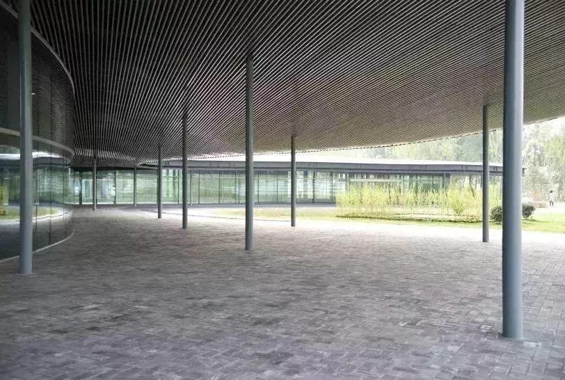 所有室外室內的地面是完全持平,連西北側的這片人工湖也與地面持平,使得建築與自然完美融合。