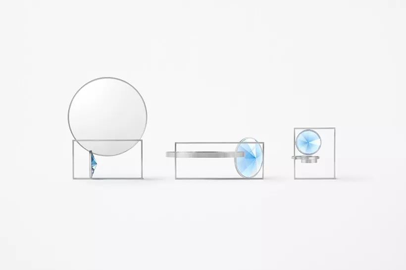 依舊是為施華洛世奇設計的立方體框架,根據戒指的位置、方向和大小,每件物品都有不同的功能,如燭台、花瓶、托盤和鏡子。花或蠟燭的火焰可以通過仔細定位的平切水晶圓盤來欣賞,從而形成物體的框架。
