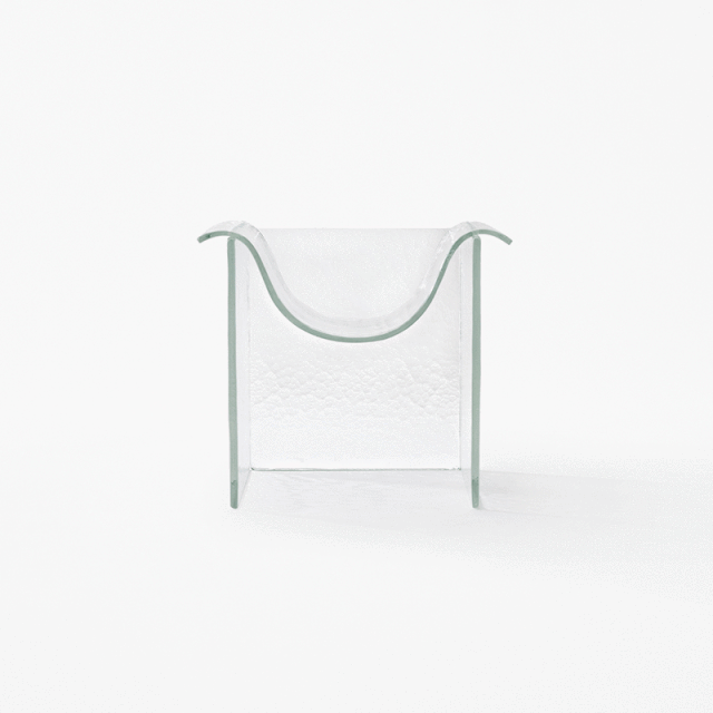 為義大利玻璃工藝品牌 WonderGlass 設計的家具系列。在製造過程中,首先將熔融玻璃倒入方形框架中,其中許多工匠使用鐵鏝刀同時在表面上均勻。玻璃逐漸冷卻,當達到一定的柔韌度時,將其移動並放置在U形模具或其倒置形狀上,使玻璃緩慢下沉或拉伸以形成美麗的拱形。即使在這個成型過程中,工匠也會使用工具來塑造拱形,確保沒有彎曲或裂縫。