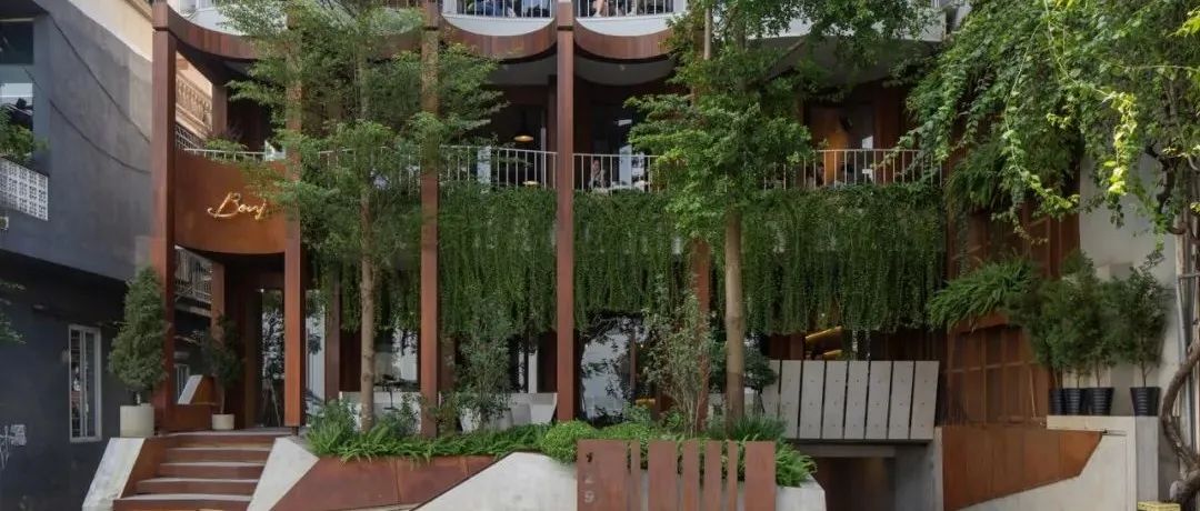咖啡店內部被定位為完全開放的空間。我們用低隔板來劃分座位區,確保視野從建築深處的區域能延伸擴散到前面的景觀。原材料的使用組合有:混凝土、磚、陶瓷、耐候鋼等等,使內部空間帶來一種質朴、友好和自然的存在,以環繞式的綠化植栽和景觀為客人帶來愉悅感。