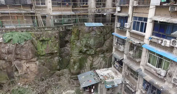 之前在微博上某位網友發圖片分享,重慶市南岸區南坪正街一社區內驚現數公尺高的無頭巨佛,該社區正在進行改造工程,施工到一半驚見一座「無頭巨佛」,且整個社區都建在巨佛的脖子上,居民多年來都不知情,目前已請文物專家前往調查,讓網友讚嘆「3D魔幻重慶」。