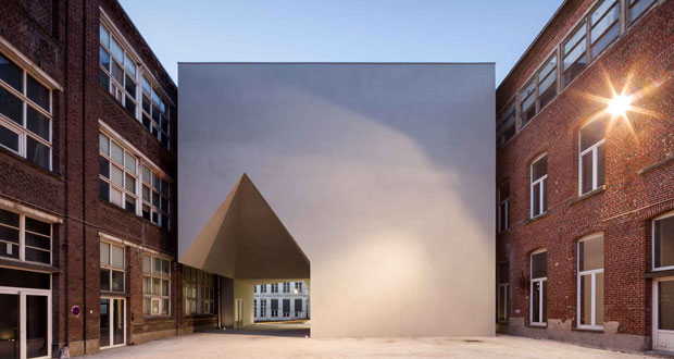 天主教魯汶大學建築學院的教職員大樓位於比利時圖爾奈(Tournai, Belgium)一個歷史悠久街廓,與周遭誕生於不同年代、不同形式的建築物共存,有兩座工業建築和一間修道院被用作醫院,新建築物是為了連結這些建築,並重新定義新的外部空間及都市紋理。